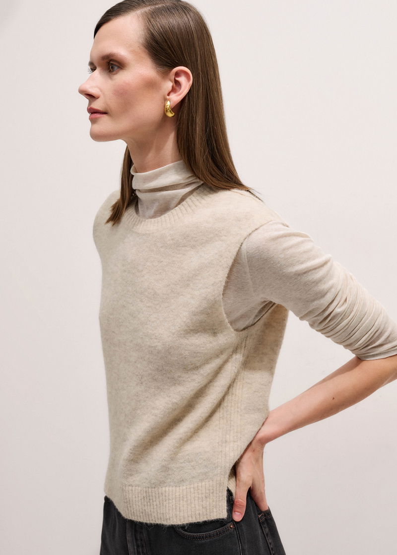 Crew Neck Straight Knit Vest Oatmeal Mélange