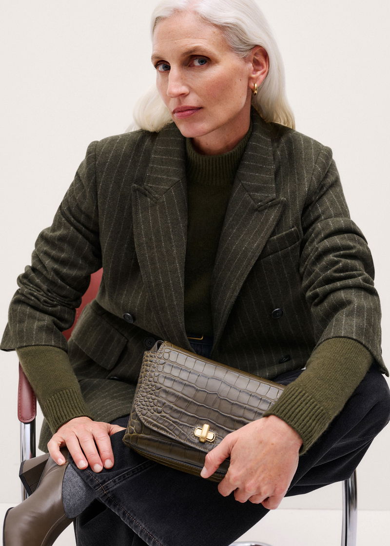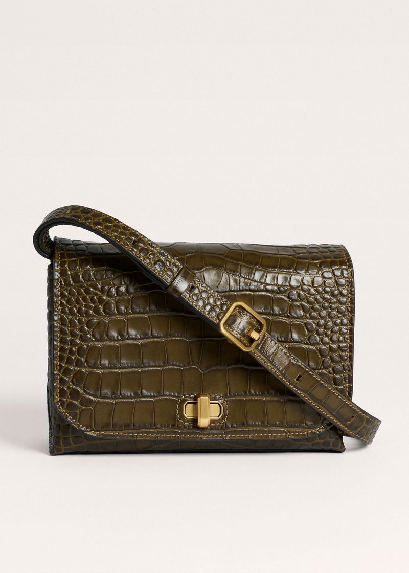 Croc Print Clutch/Crossbody Bag Intense Olive