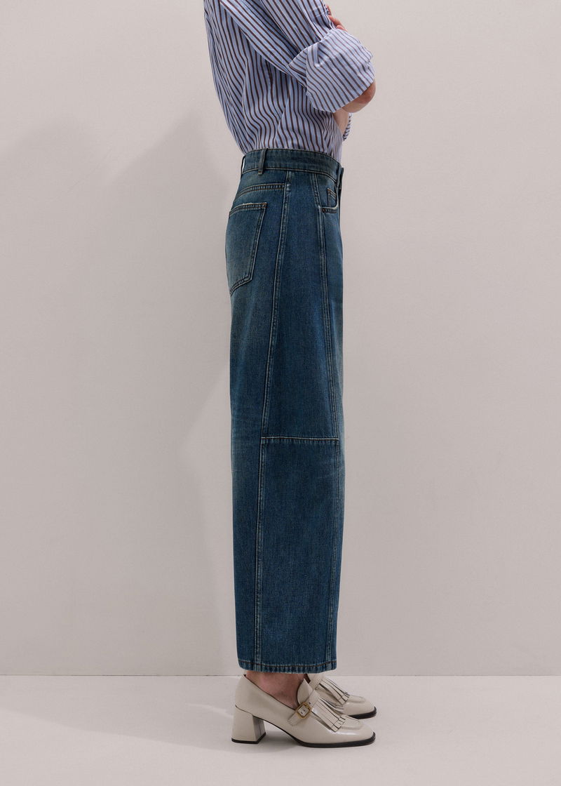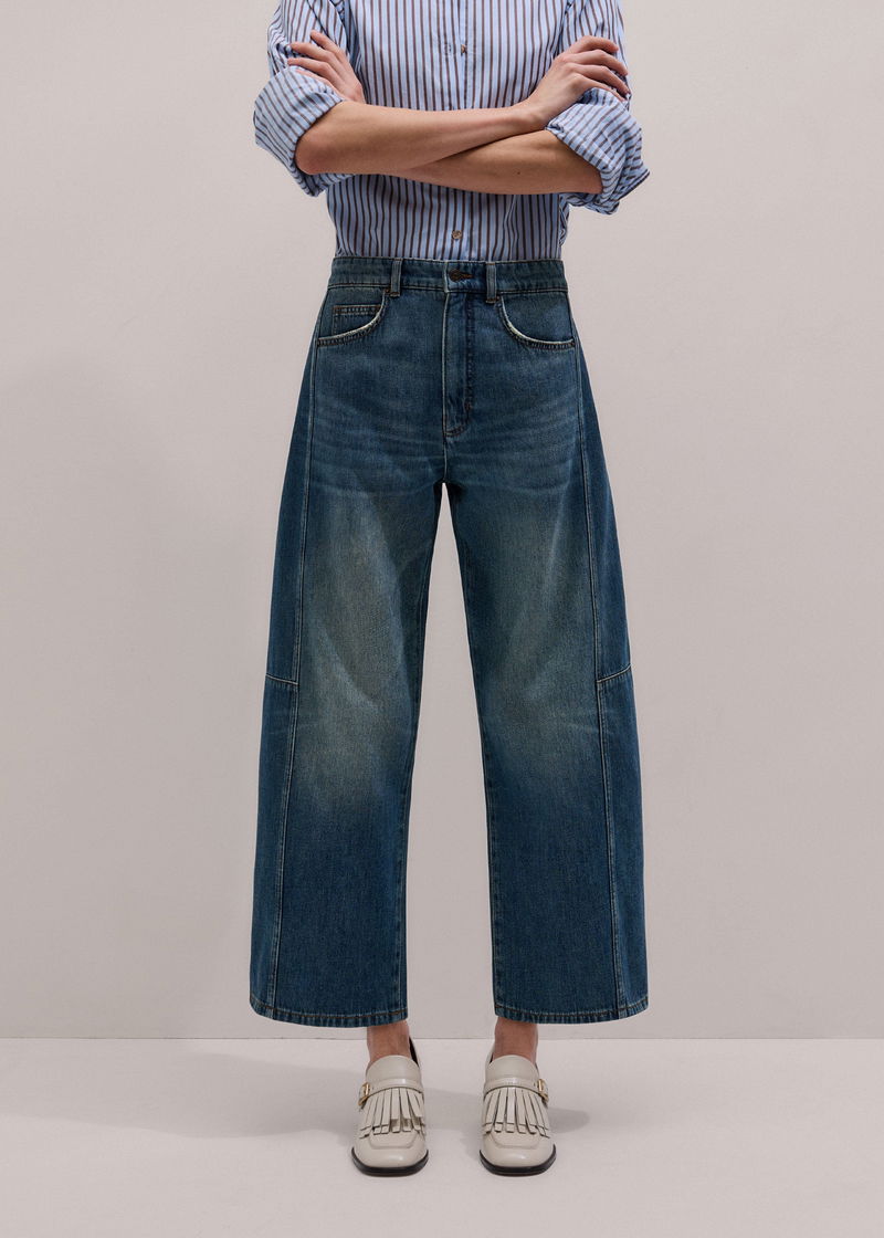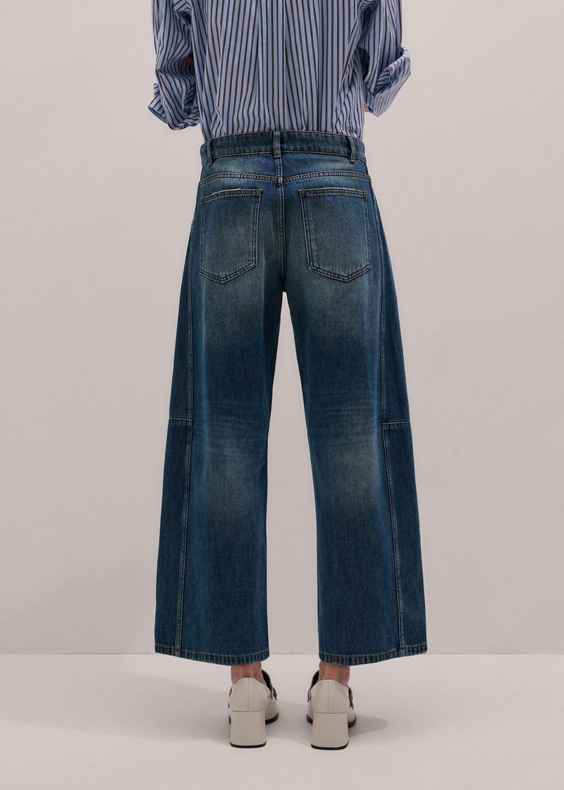 ME+EM's Blue Exaggerated Crop Jean is crafted from lightweight yet rigid cotton denim for just the right blend of structure and softness.
