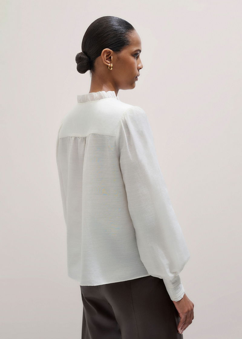 Delicate Lace Trim Detail Top Light Cream