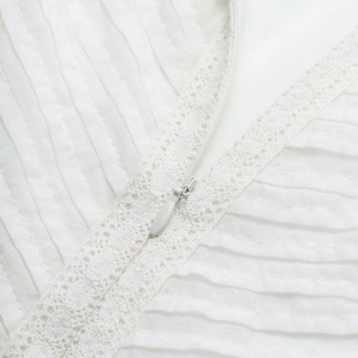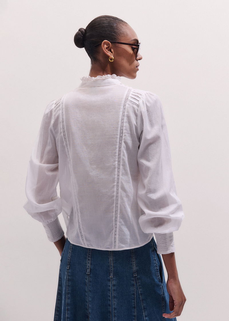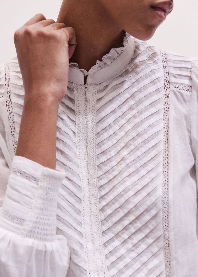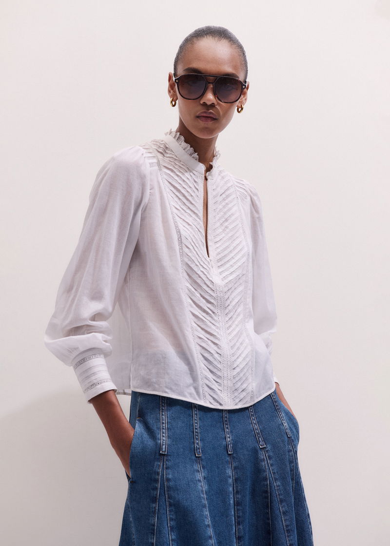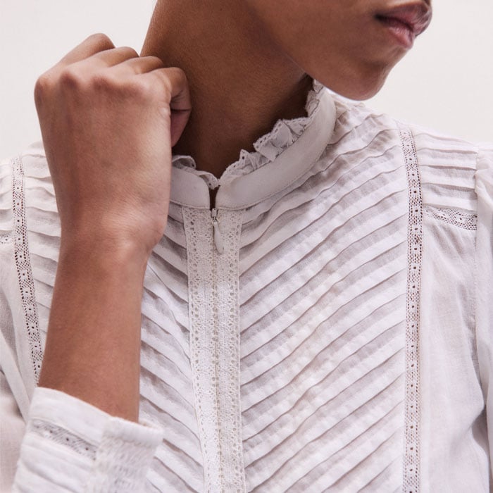 Delicate Pintucked High-Neck Top Soft White