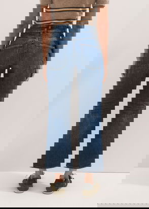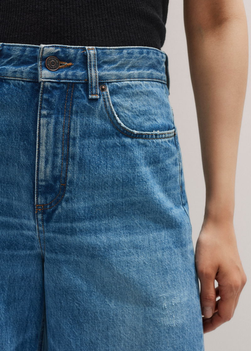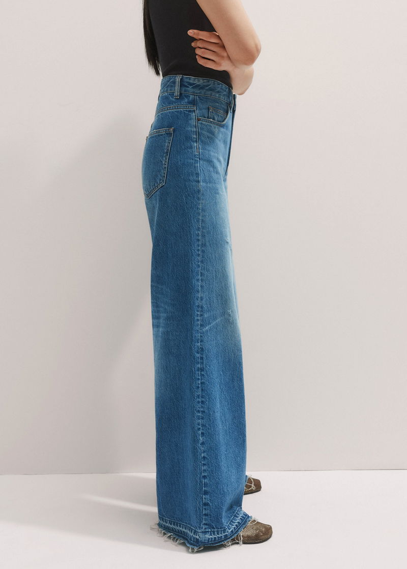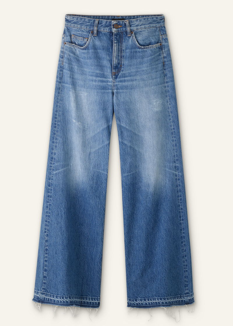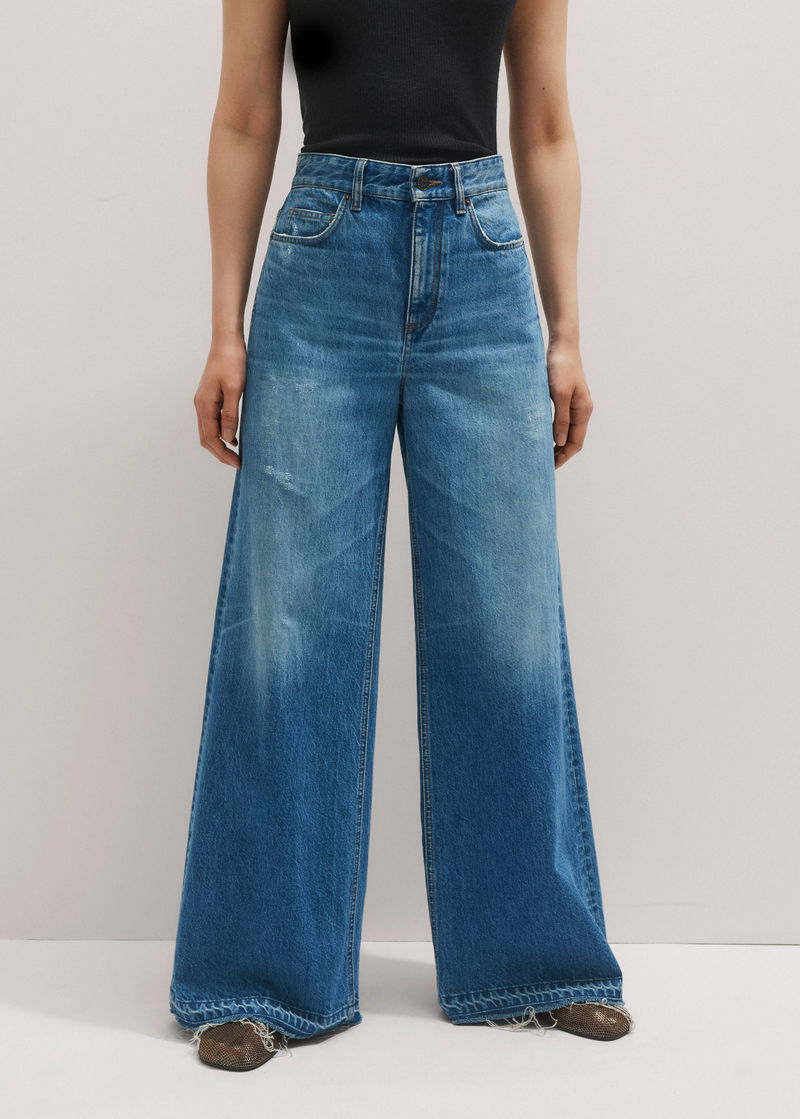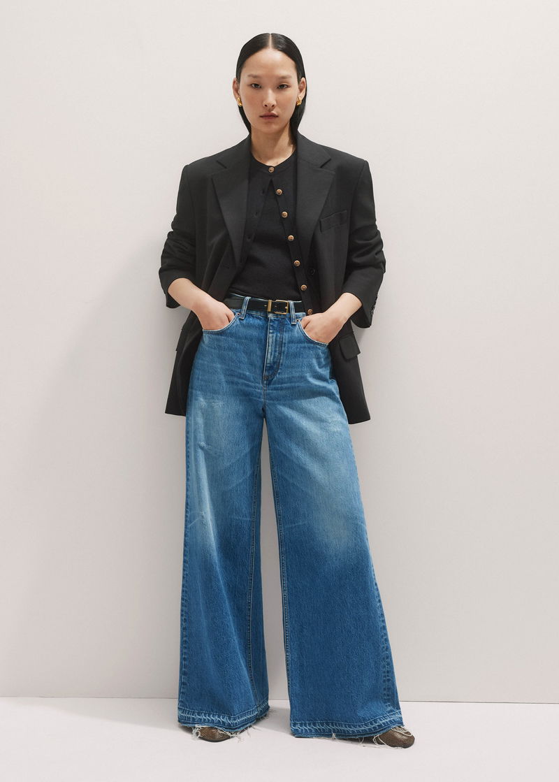 ME+EM's Blue Distressed Ultimate Wide-Leg Jean is available in three different lengths to accommodate the perfect fit for different heights.