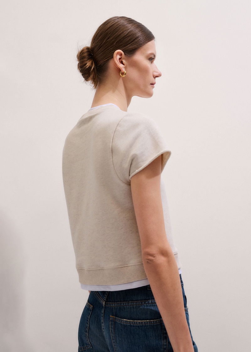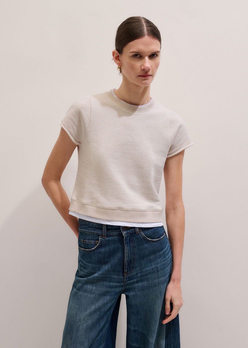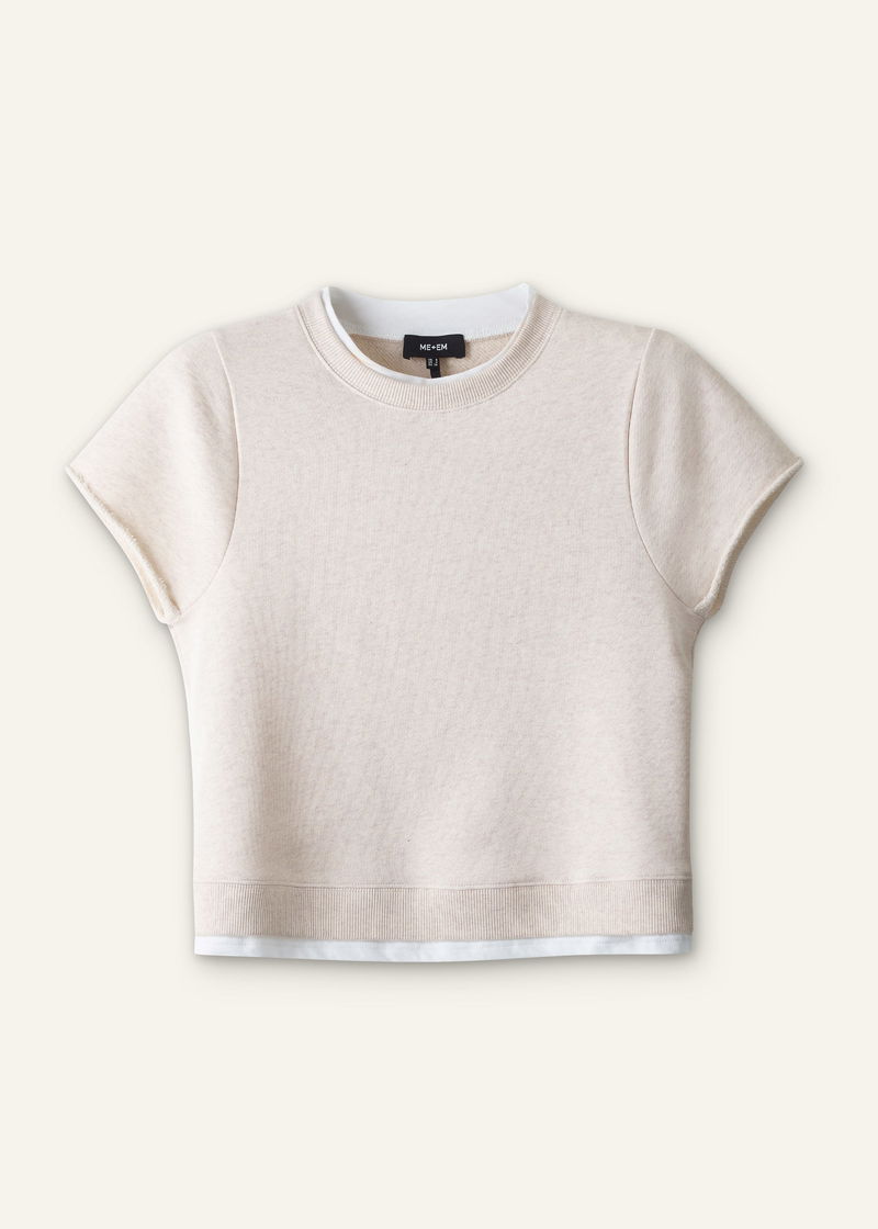 Double Layer Short Sleeve Sweatshirt Oatmeal Melange/Soft White