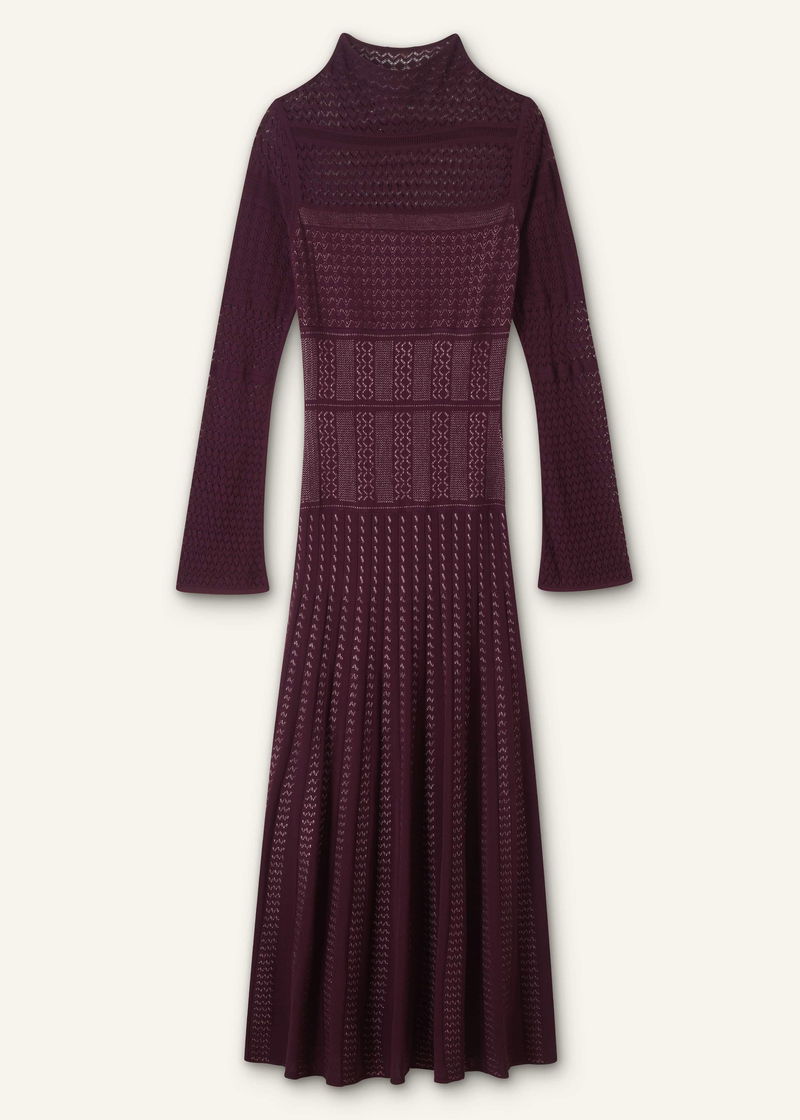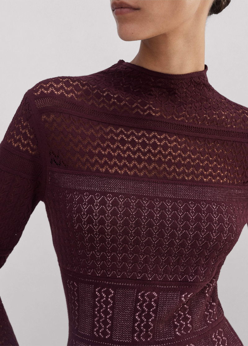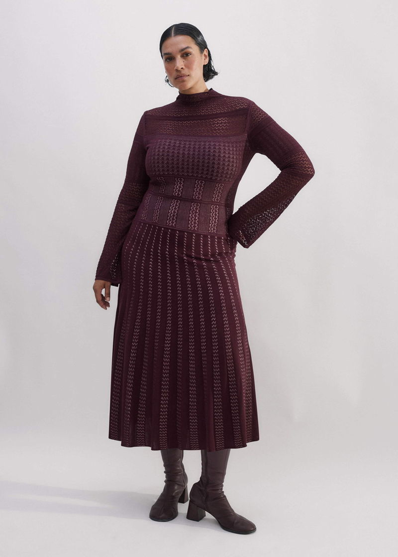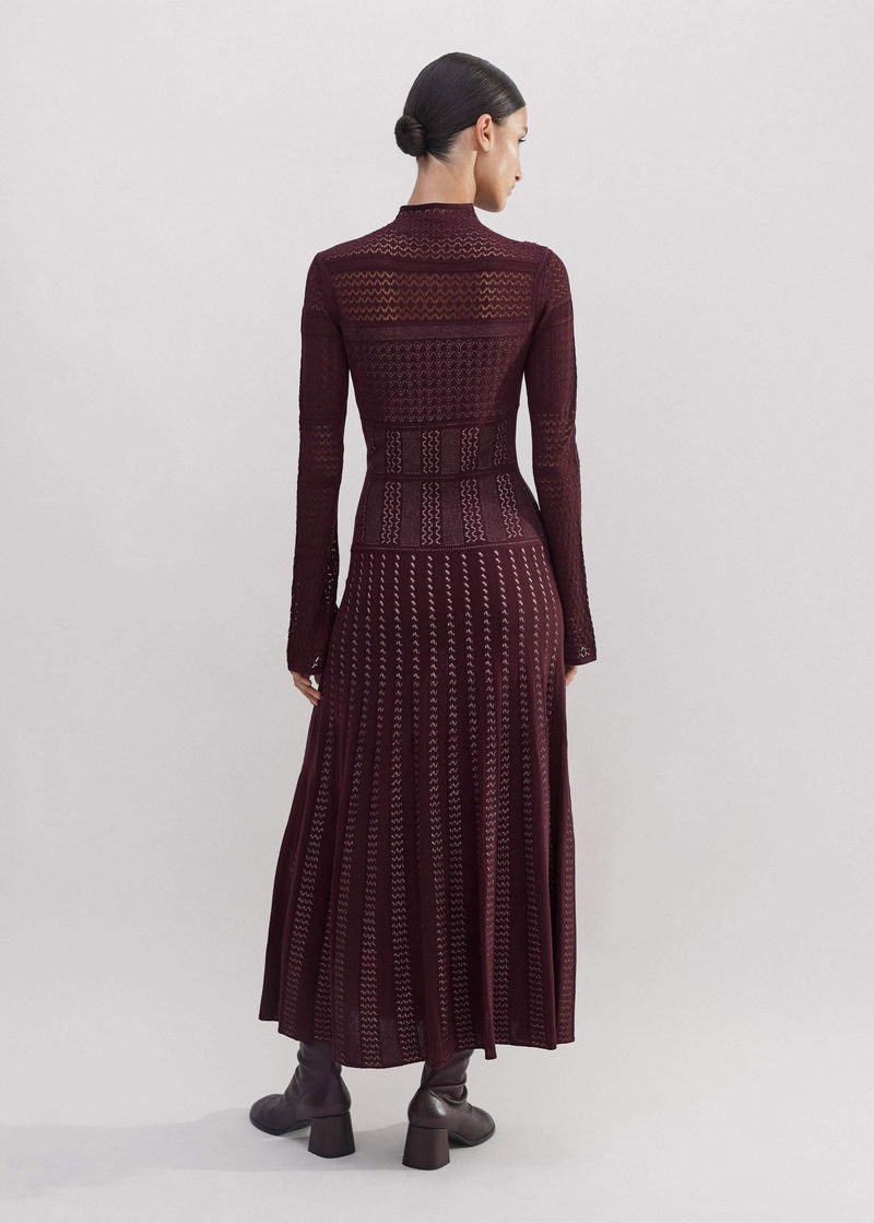 Elevated Pointelle Knit Midi Dress Deep Merlot / Smoke Pink