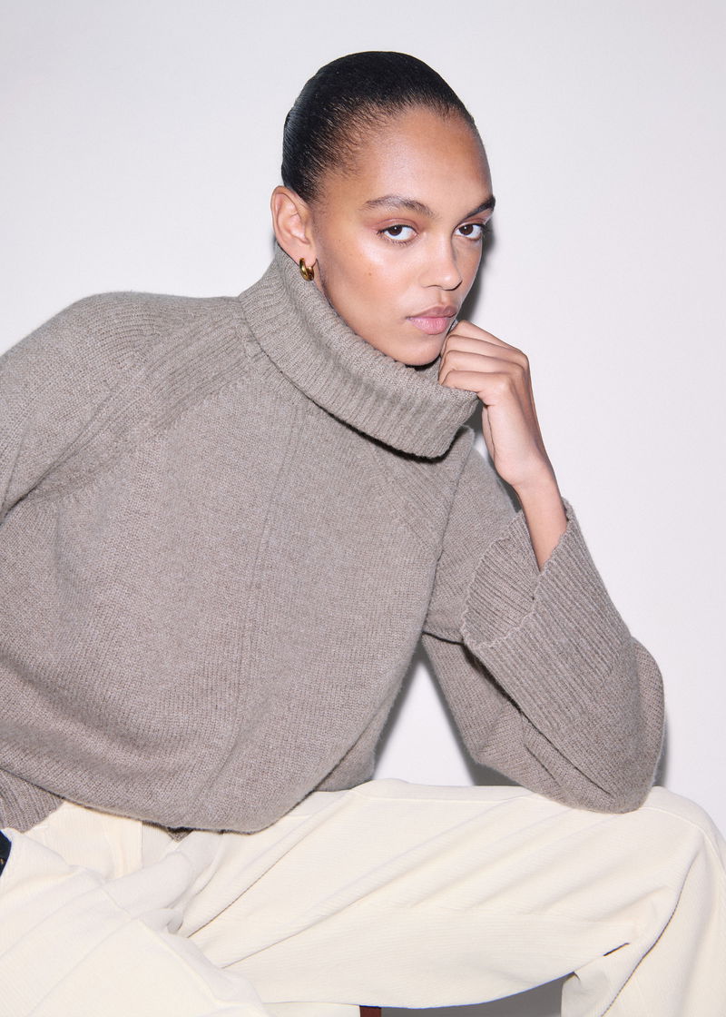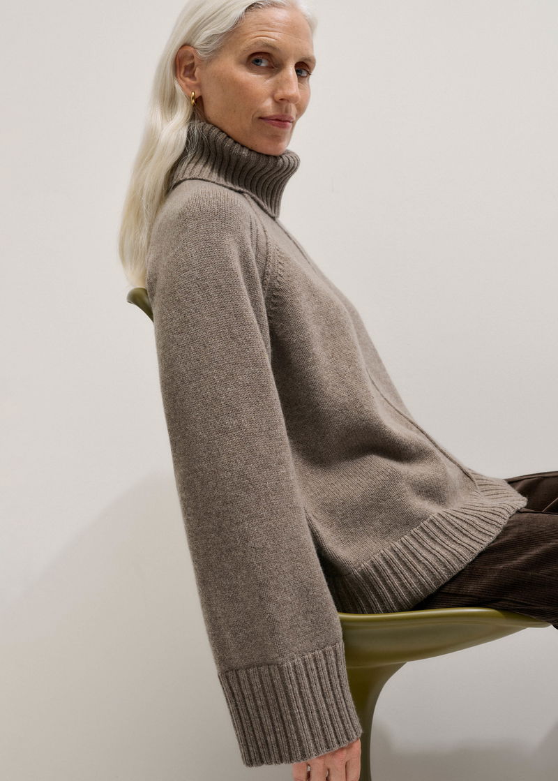 Exposed Seam Raglan Jumper + Snood Pebble Brown