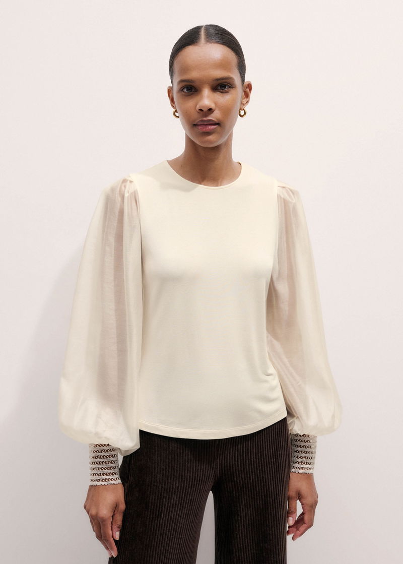 Feature Cuff Layering Blouse Cream