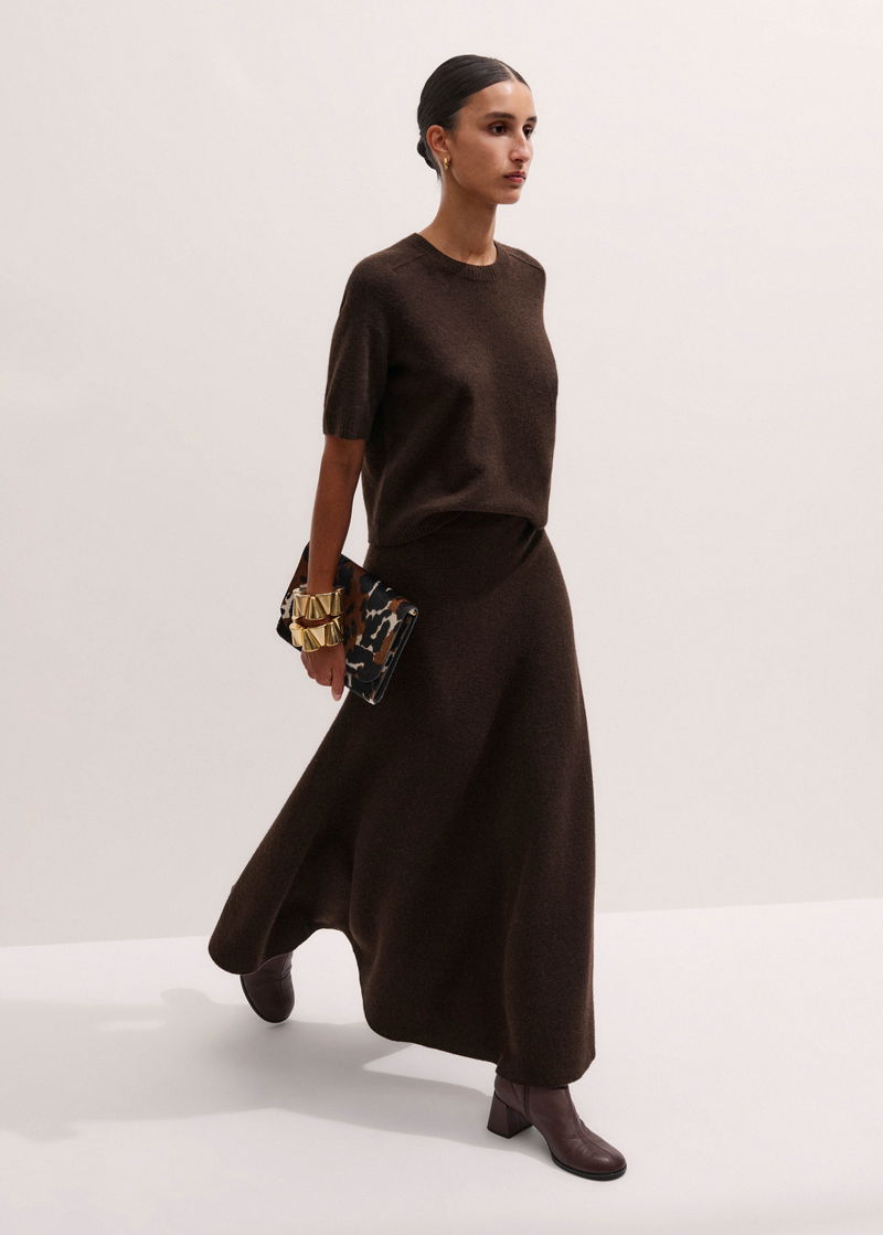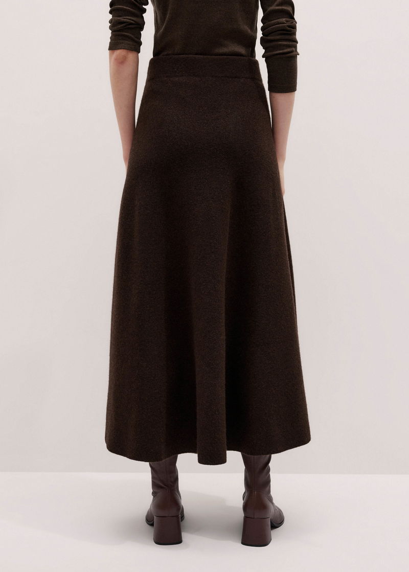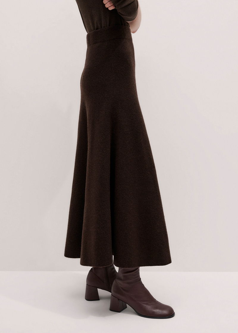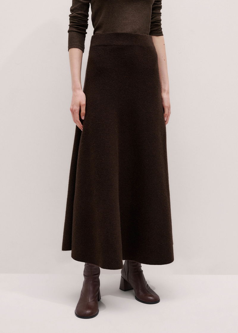 Felted Merino Relaxed Knit Maxi Skirt Warm Chocolate Melange