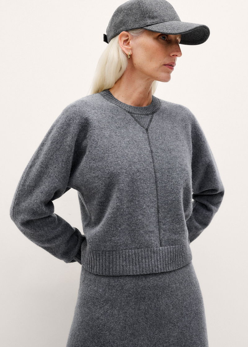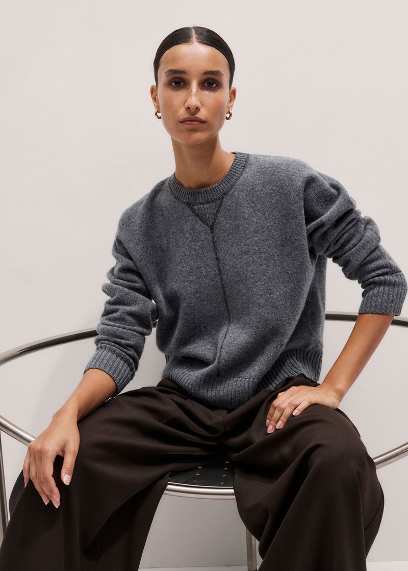 Felted Merino Relaxed Knit Sweatshirt Mid Grey Mélange