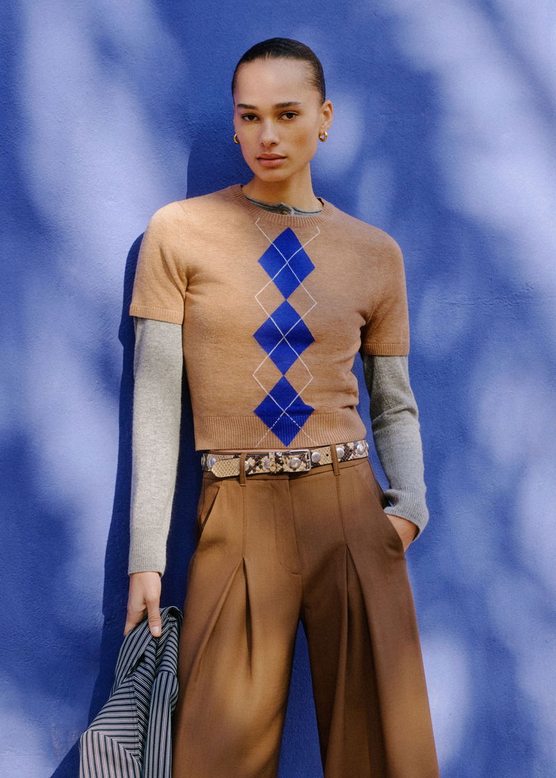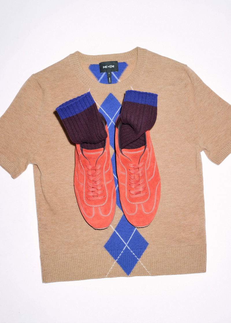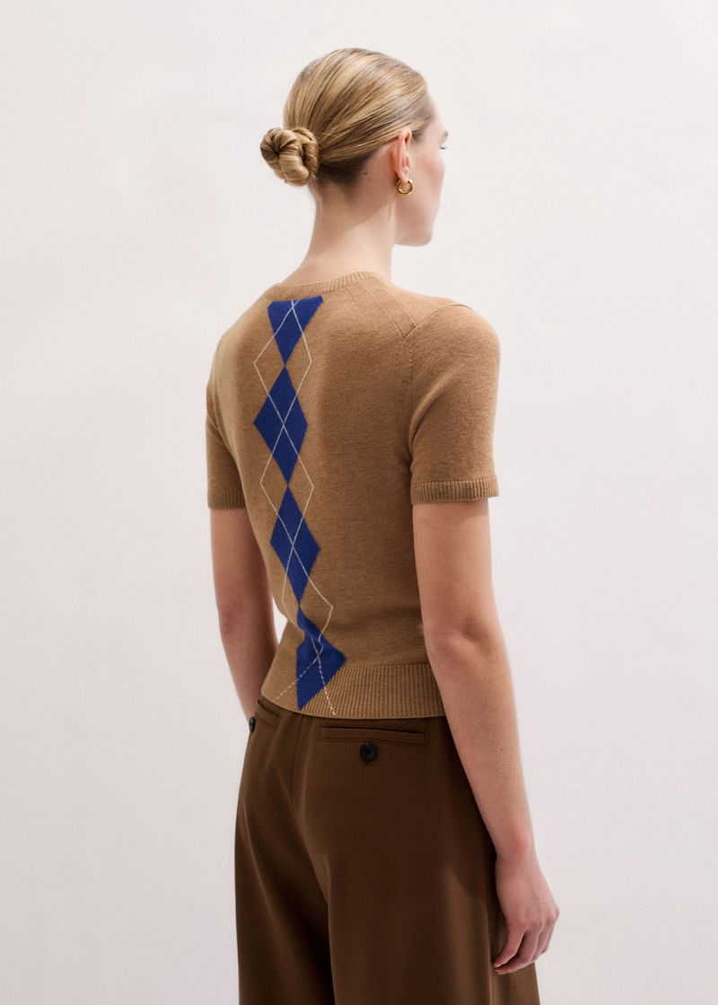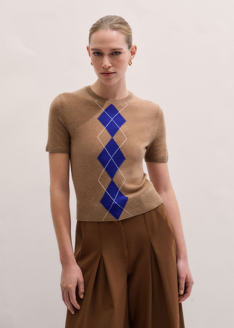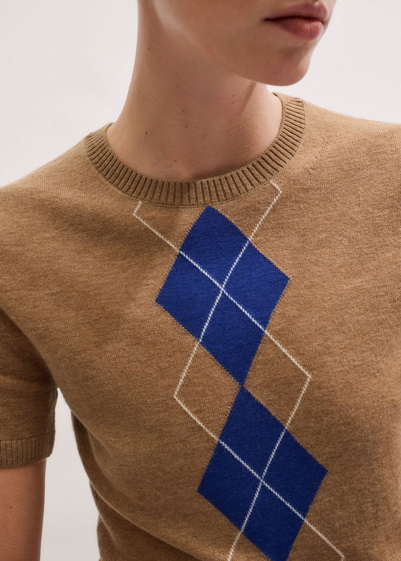 Fine Argyle Slim Tee Camel/Deep Blue