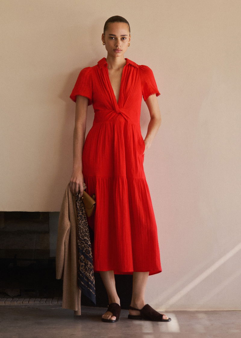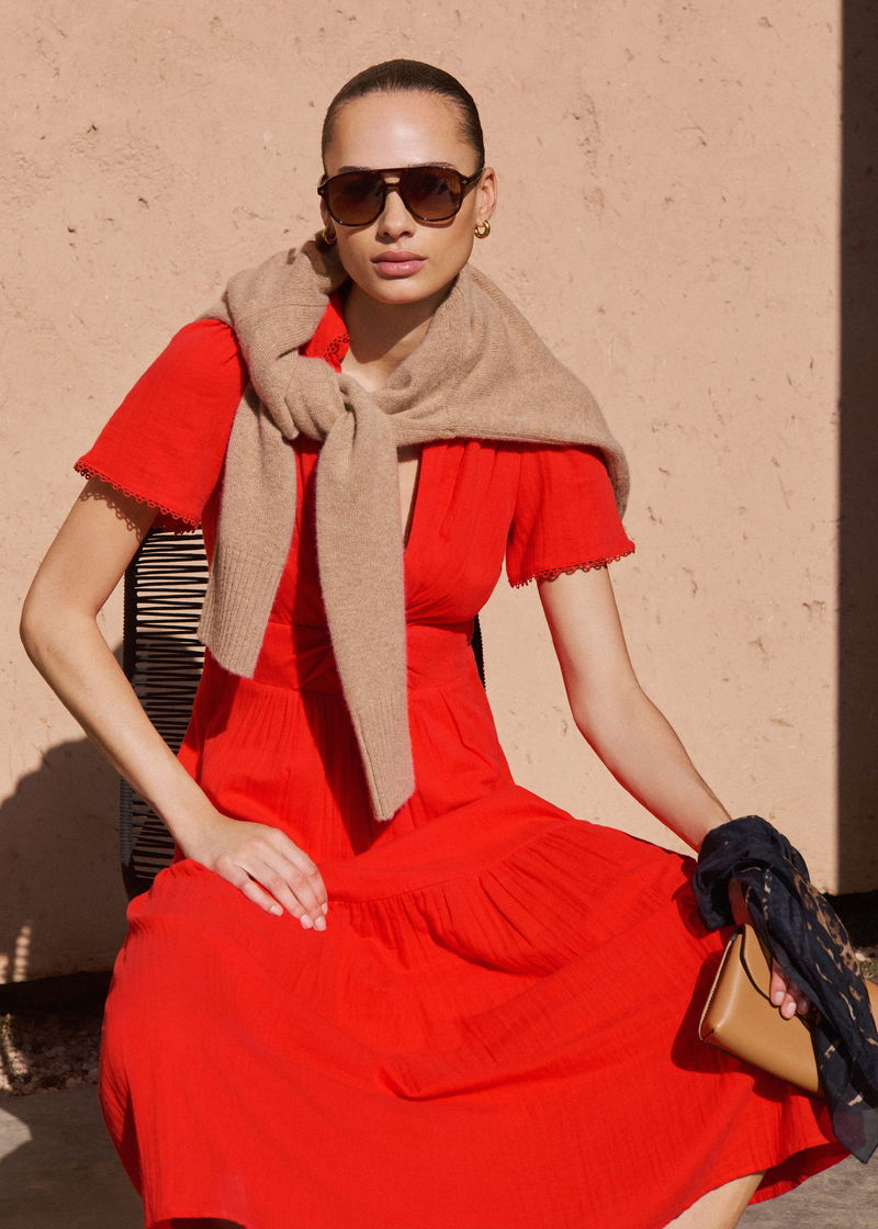 Fit & Flare Twist Cheesecloth Maxi Dress Poppy Red