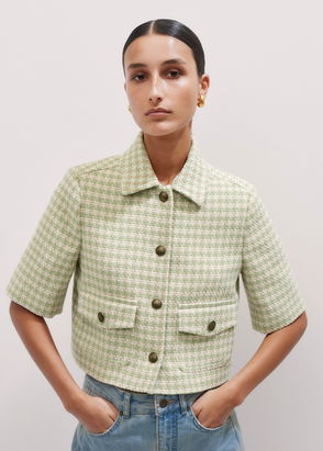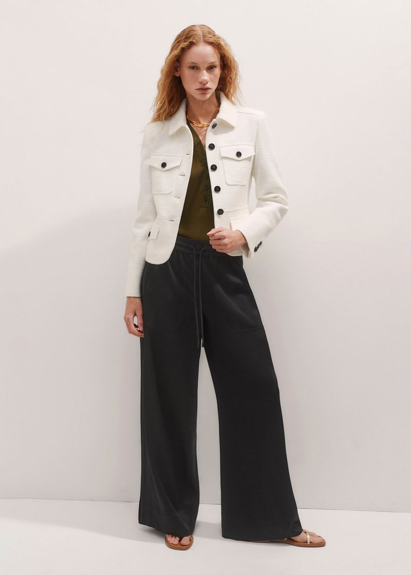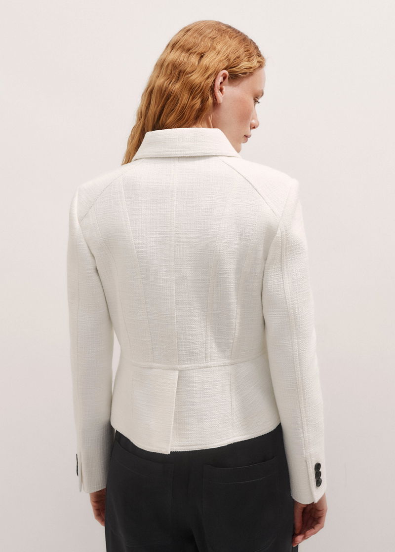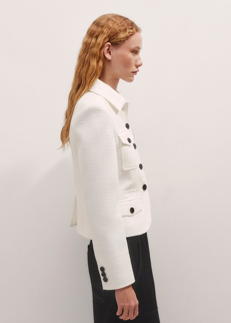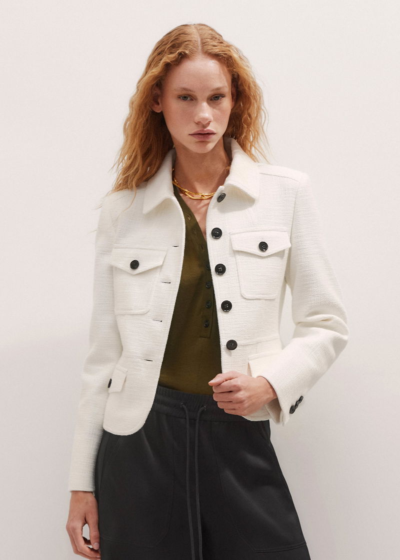 ME+EM's Cream Cotton Fitted Utility Jacket has a tweed-like surface and softly structured feel.