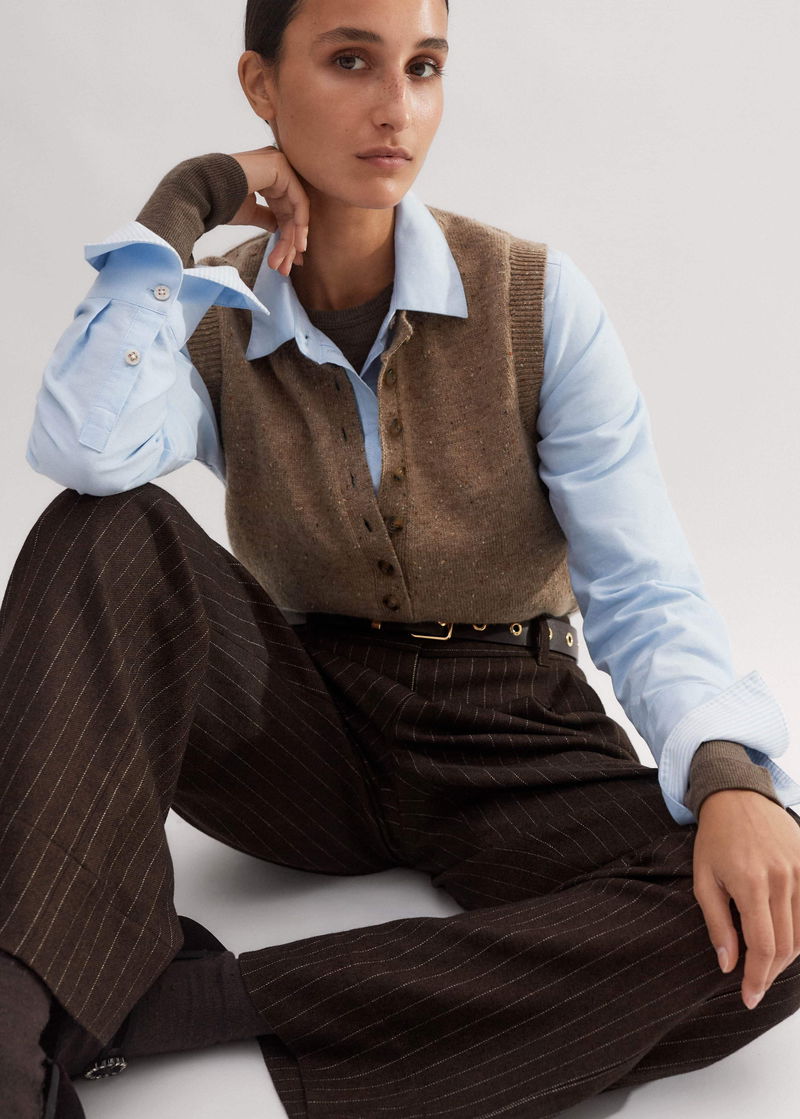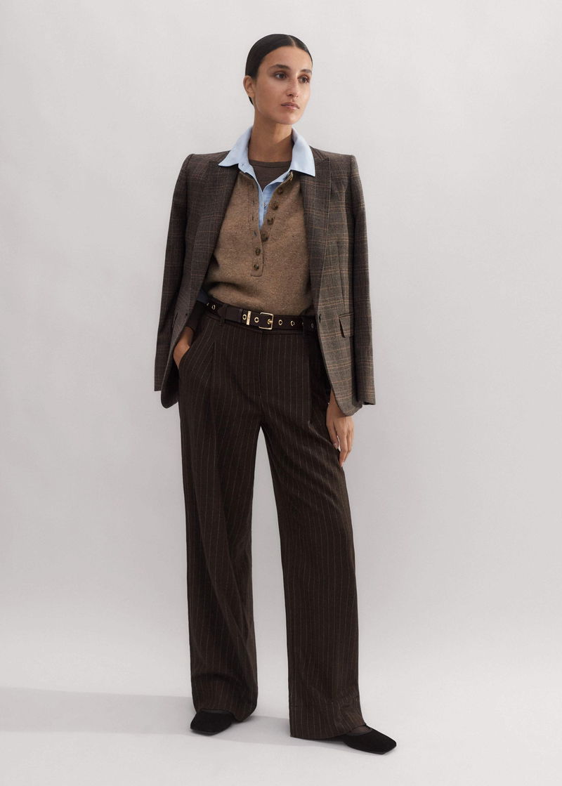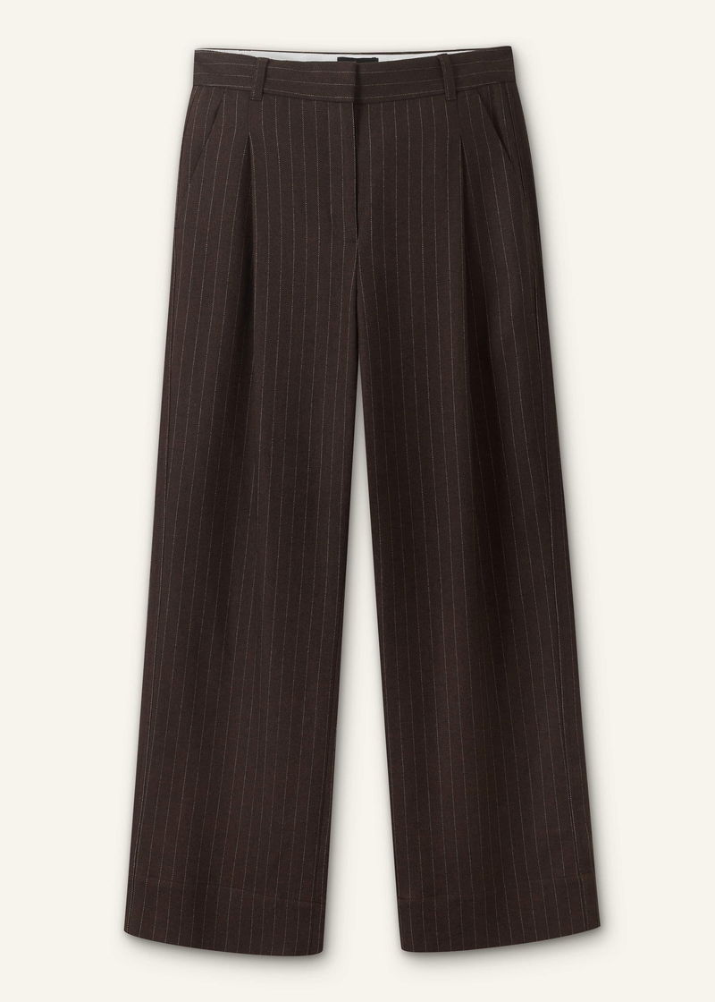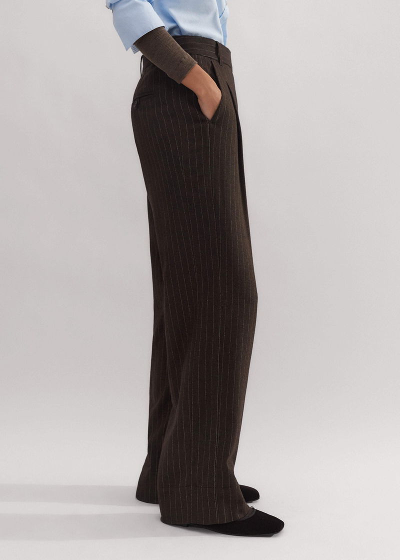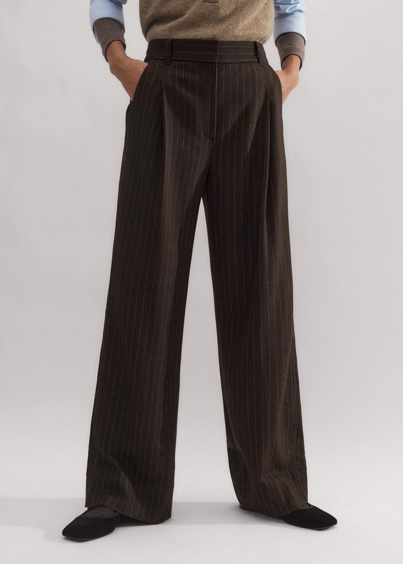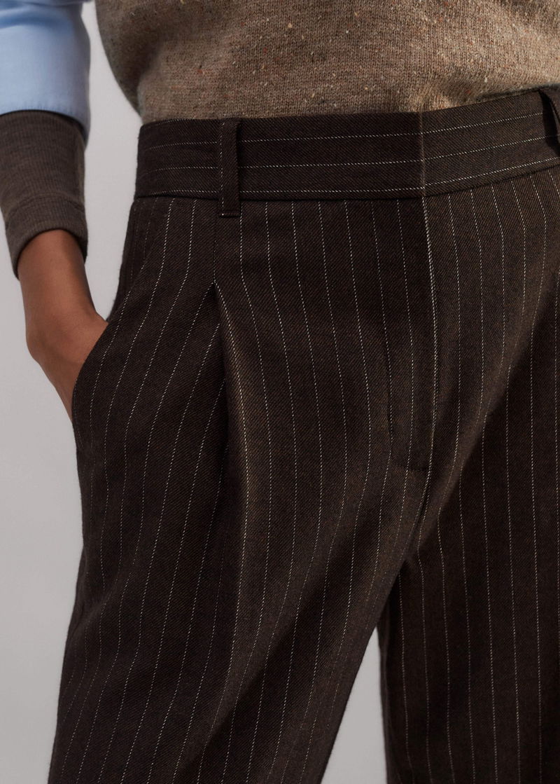 Soft Italian tailoring in a subtle pinstripe pattern grants ME+EM's Brown Flannel Pinstripe Trouser added depth and a covetable tactility.