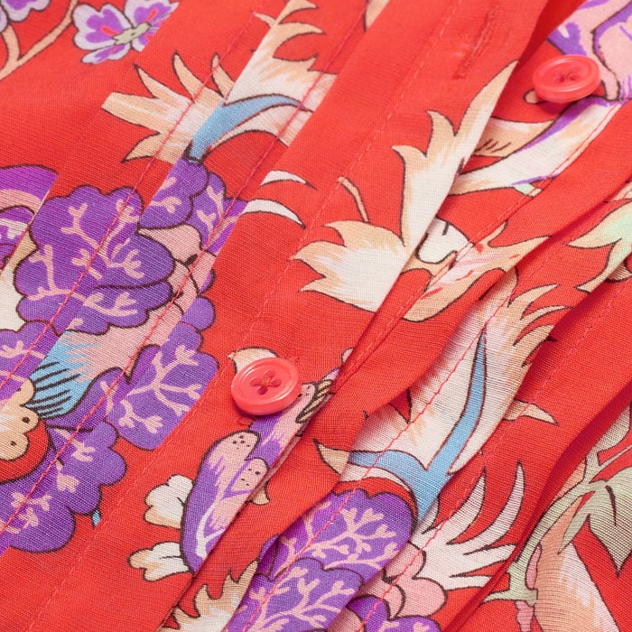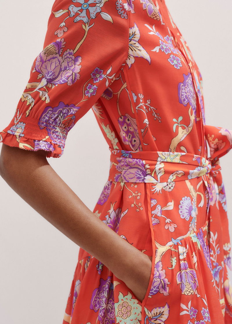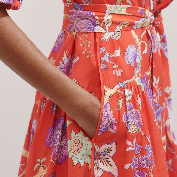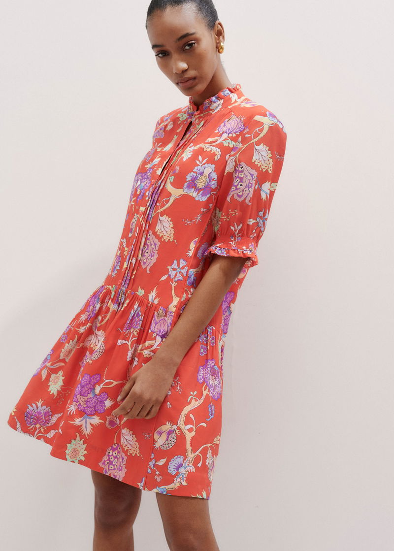 Floral Garden Print Short Swing Dress + Tie Papaya Orange/Iris/Multi