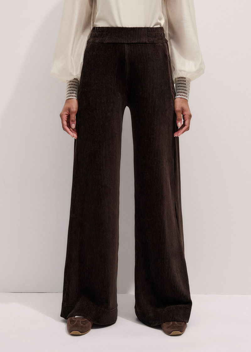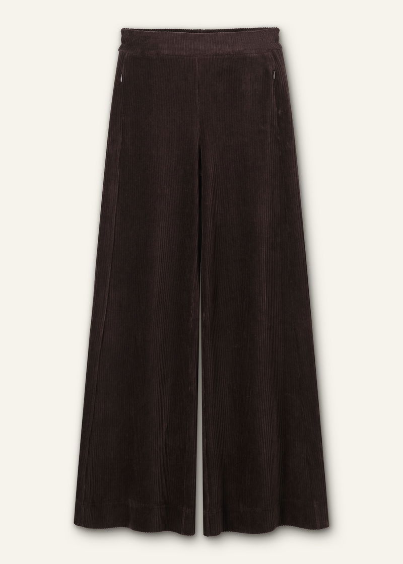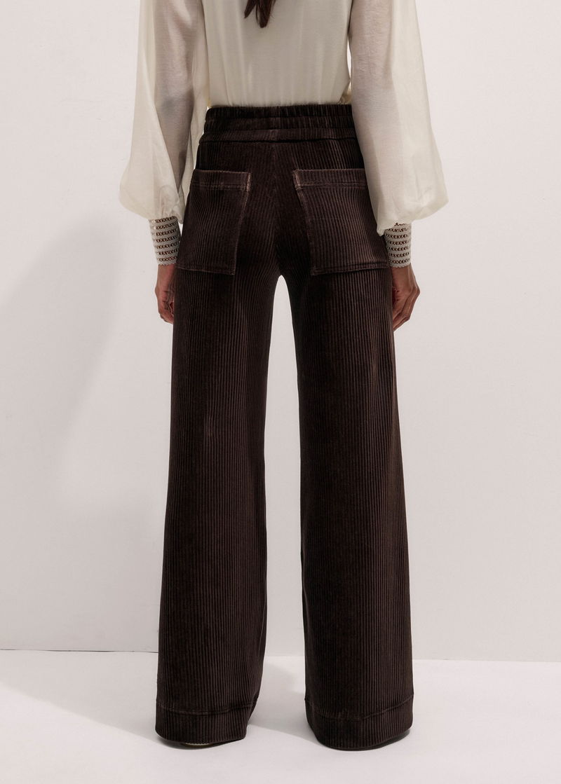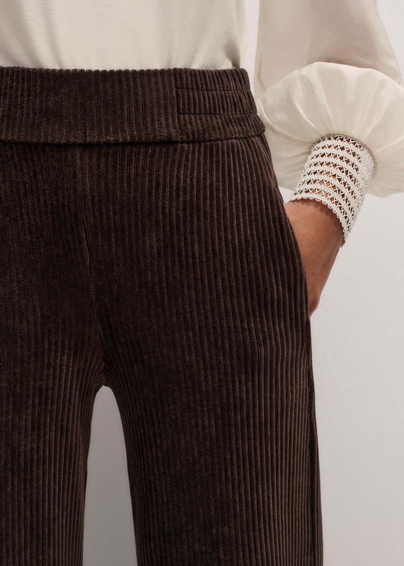 ME+EM's Brown Fluid Cord Velour AM-PM Palazzo Pant is crafted from stretch-infused cotton corduroy jersey with a velvety finish.