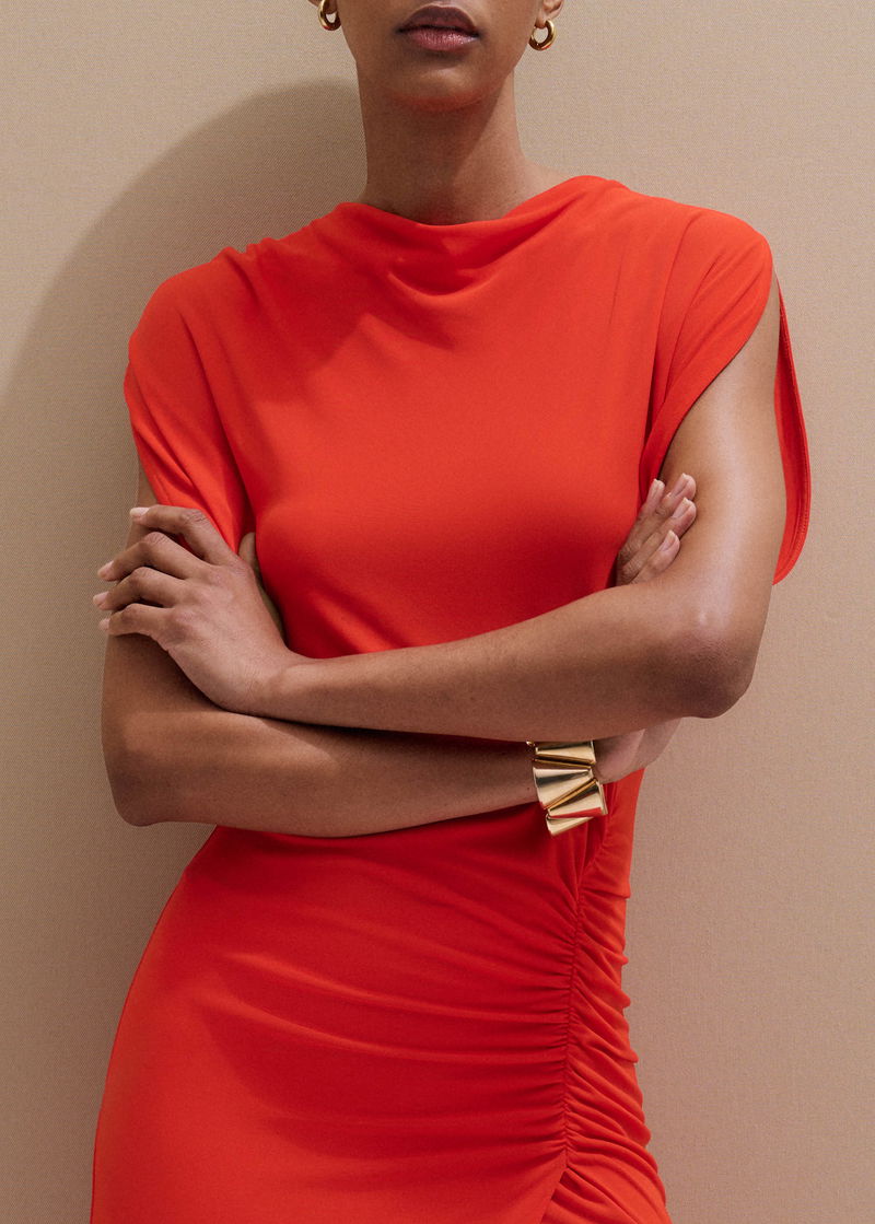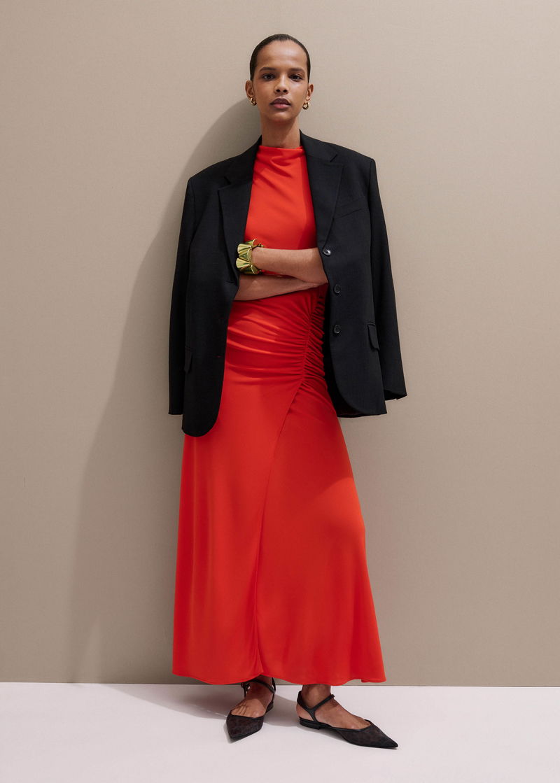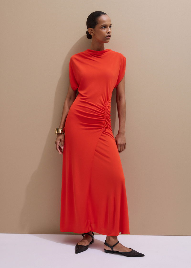 Fluid Crepe Curved Sleeve Maxi Dress Poppy Red