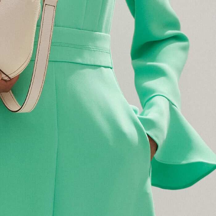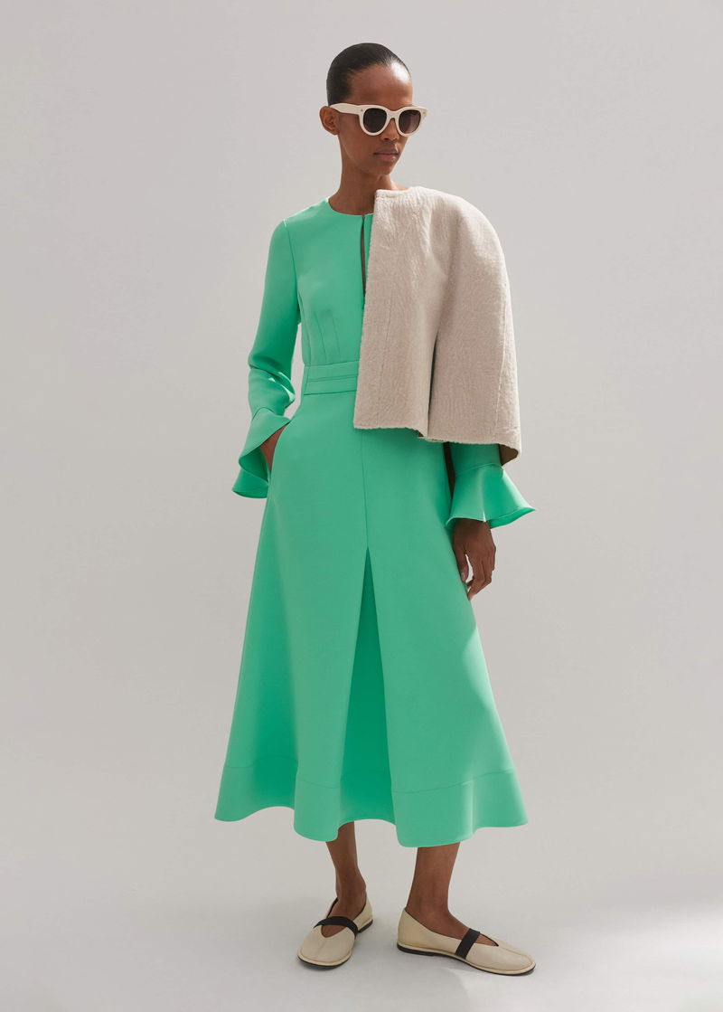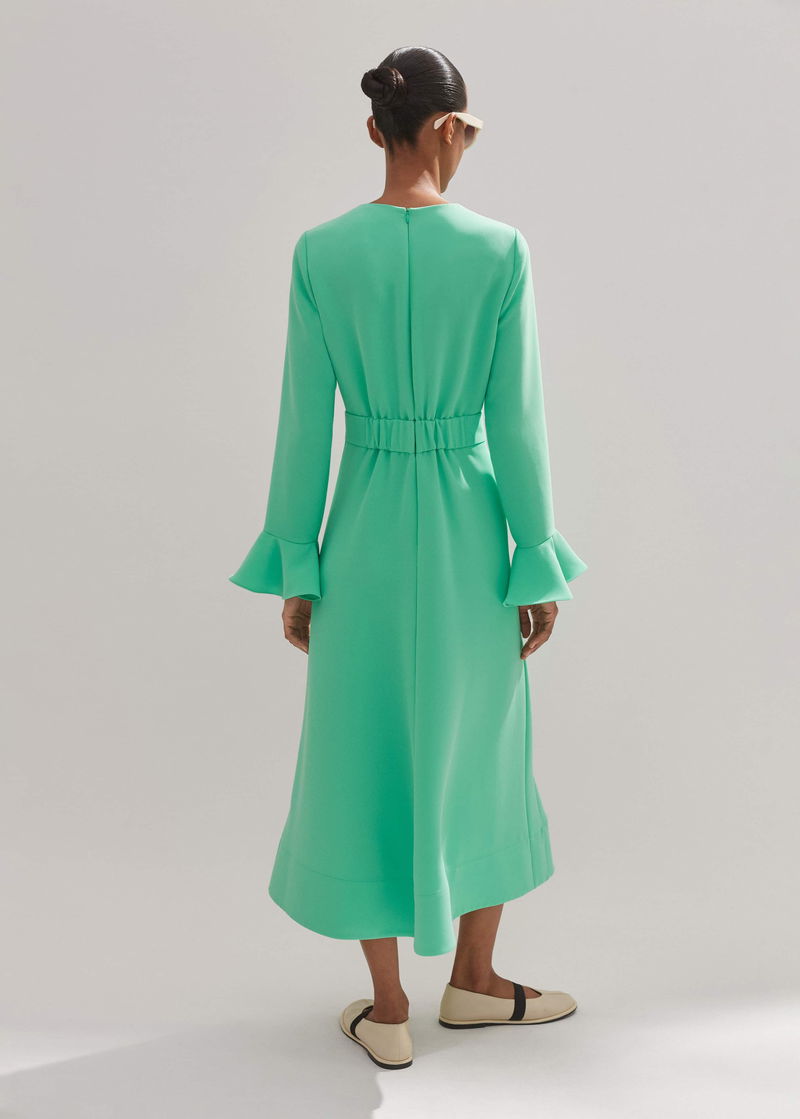 ME+EM's Mint Fluid Crepe Elegant Midi Dress is crafted from crease-resistant recycled crepe for AM-PM polish.