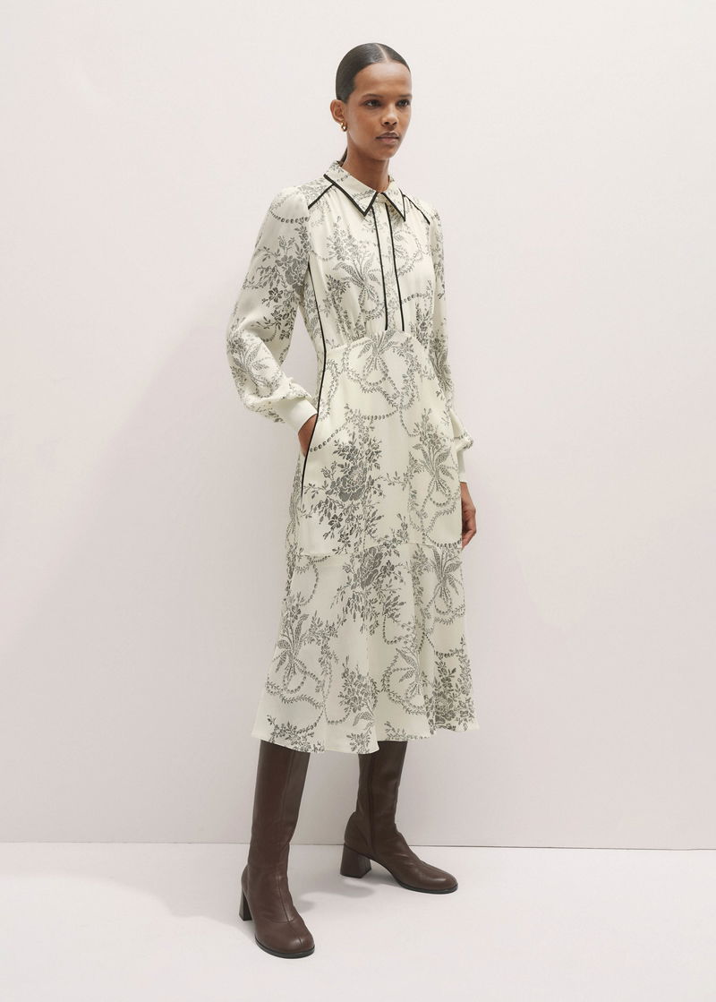 Fluid Fit And Flare Midi Dress Light Cream/Black