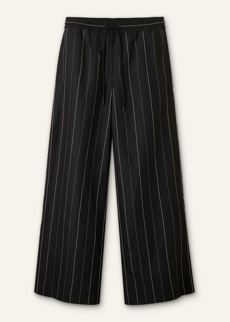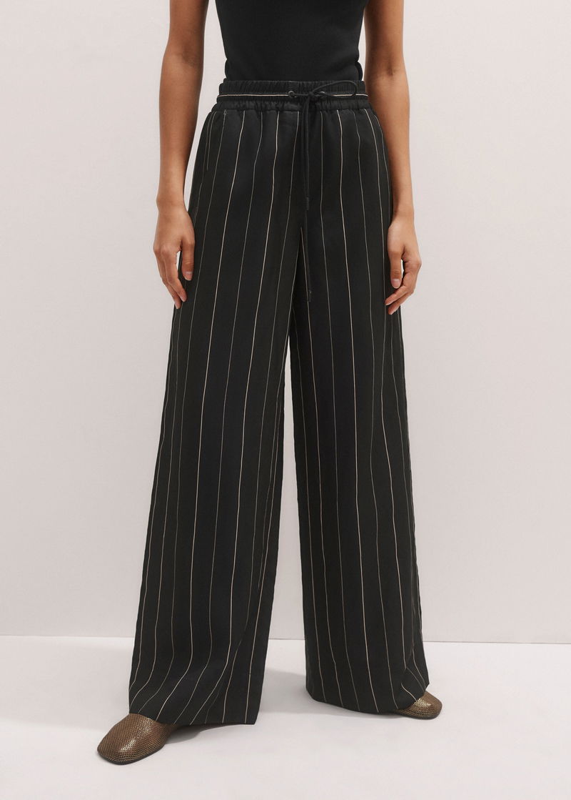 ME+EM's Black Fluid Stripe Track Pant is designed with a pull-on elasticated waistband for all-day comfort.