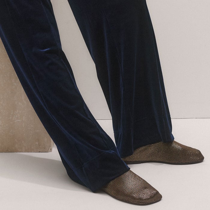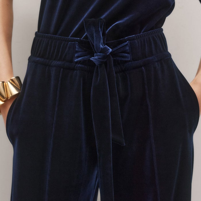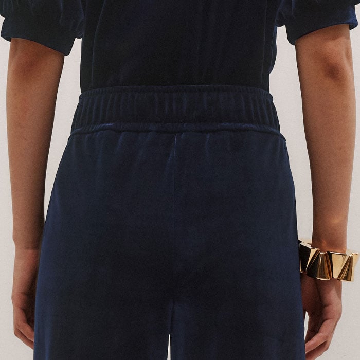 ME+EM's Blue AM-PM Fluid Velour Track Pant is made from a fluid velour jersey with a soft, velvety texture and a natural shine.