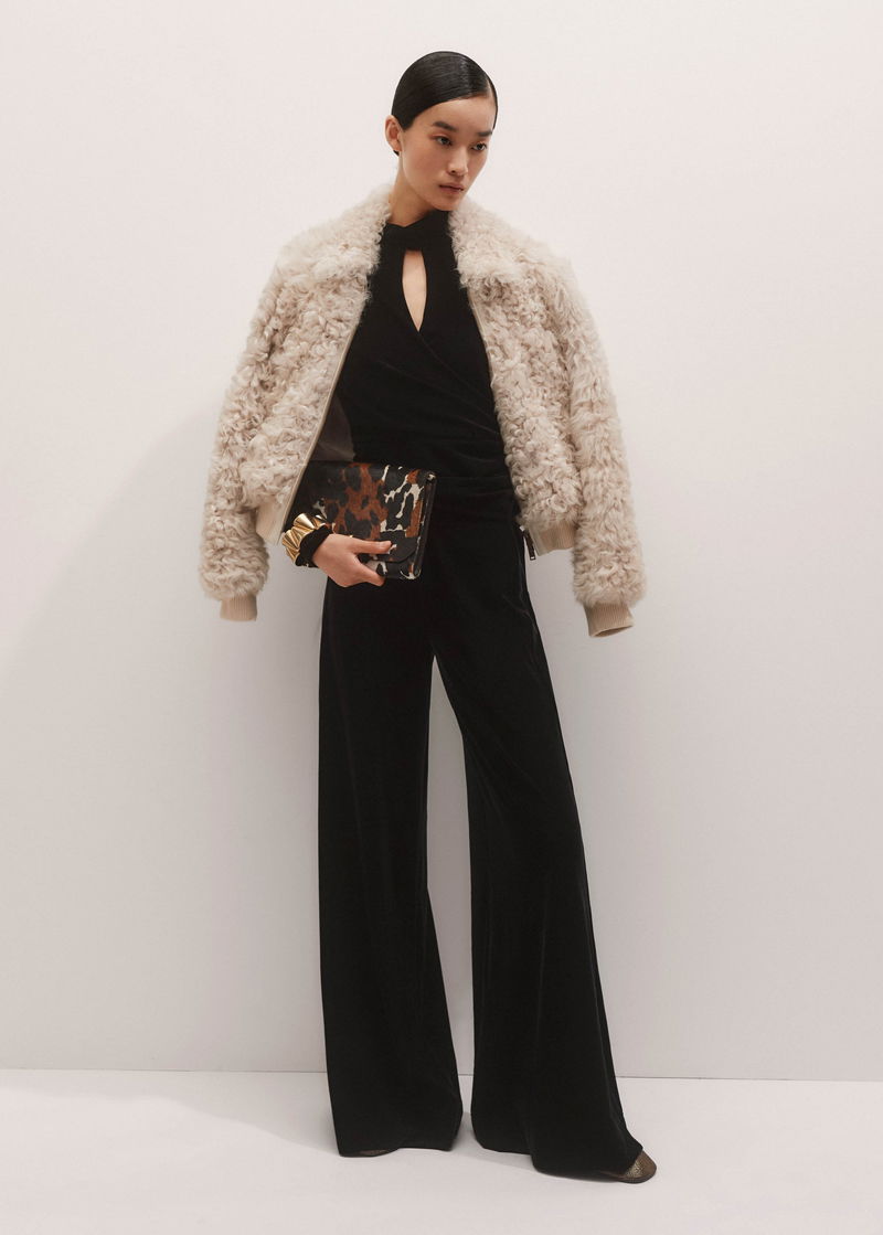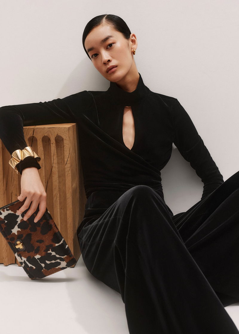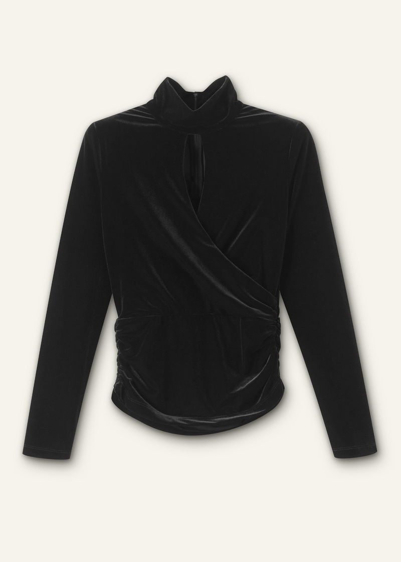 Fluid Velour Wrap Front Top Black