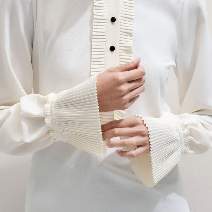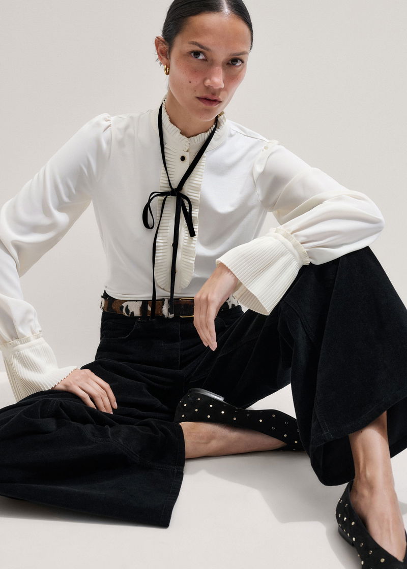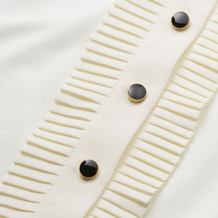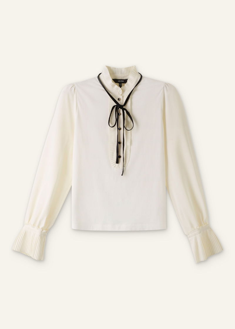 Frill Neck Layering Blouse + Tie Light Cream