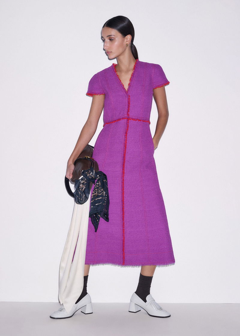 Fringe Detail Fit And Flare Midi Dress Wildflower Purple