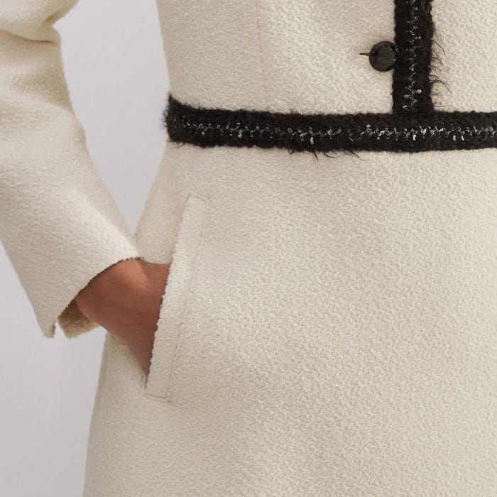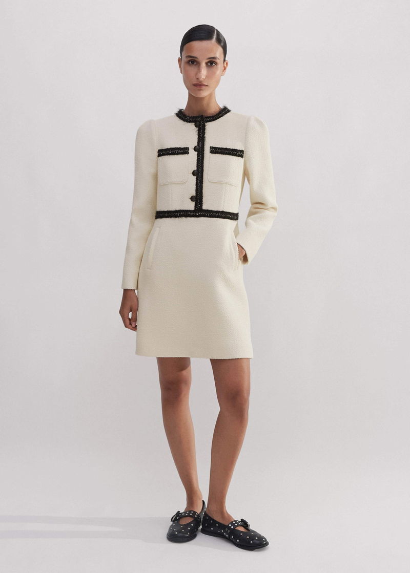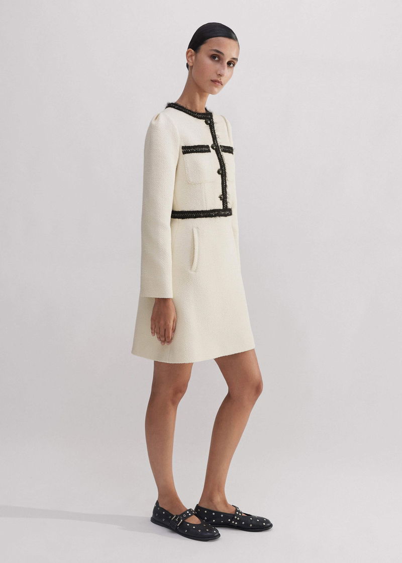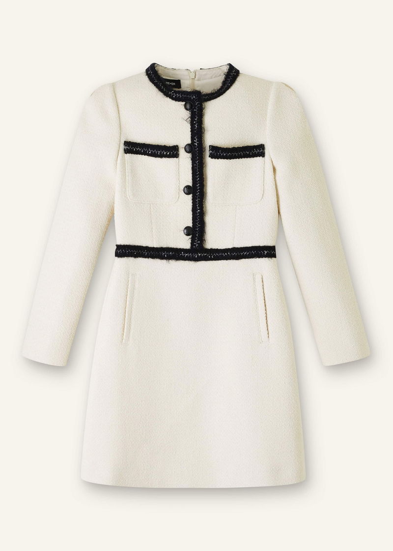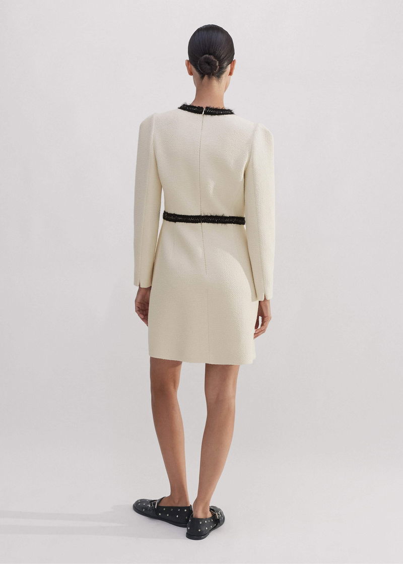 Fringe Tweed Fit And Flare Mini Dress Ivory/Black