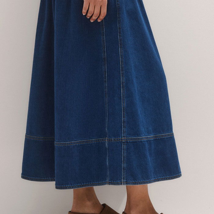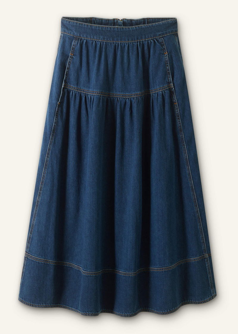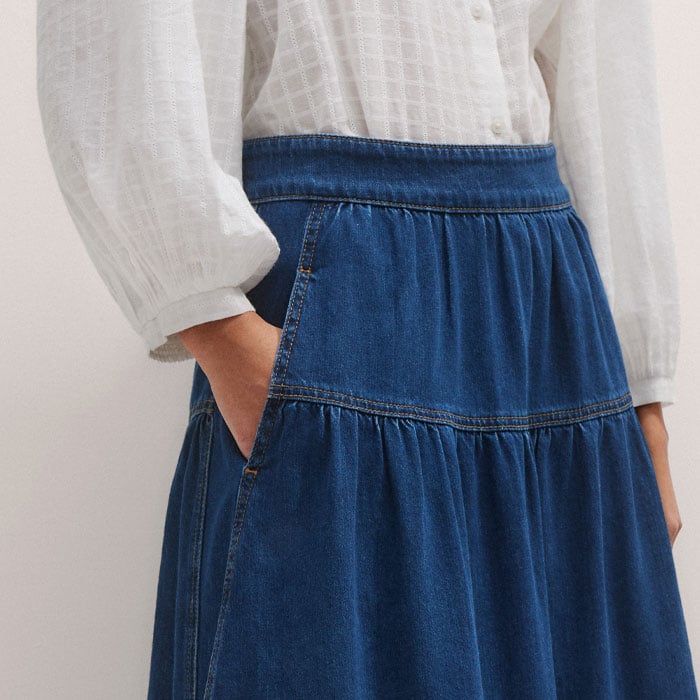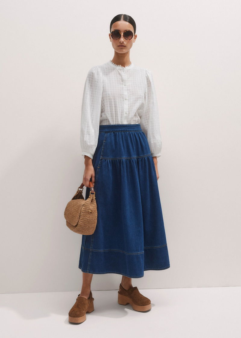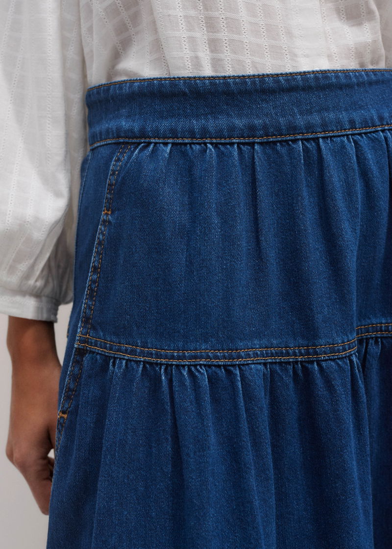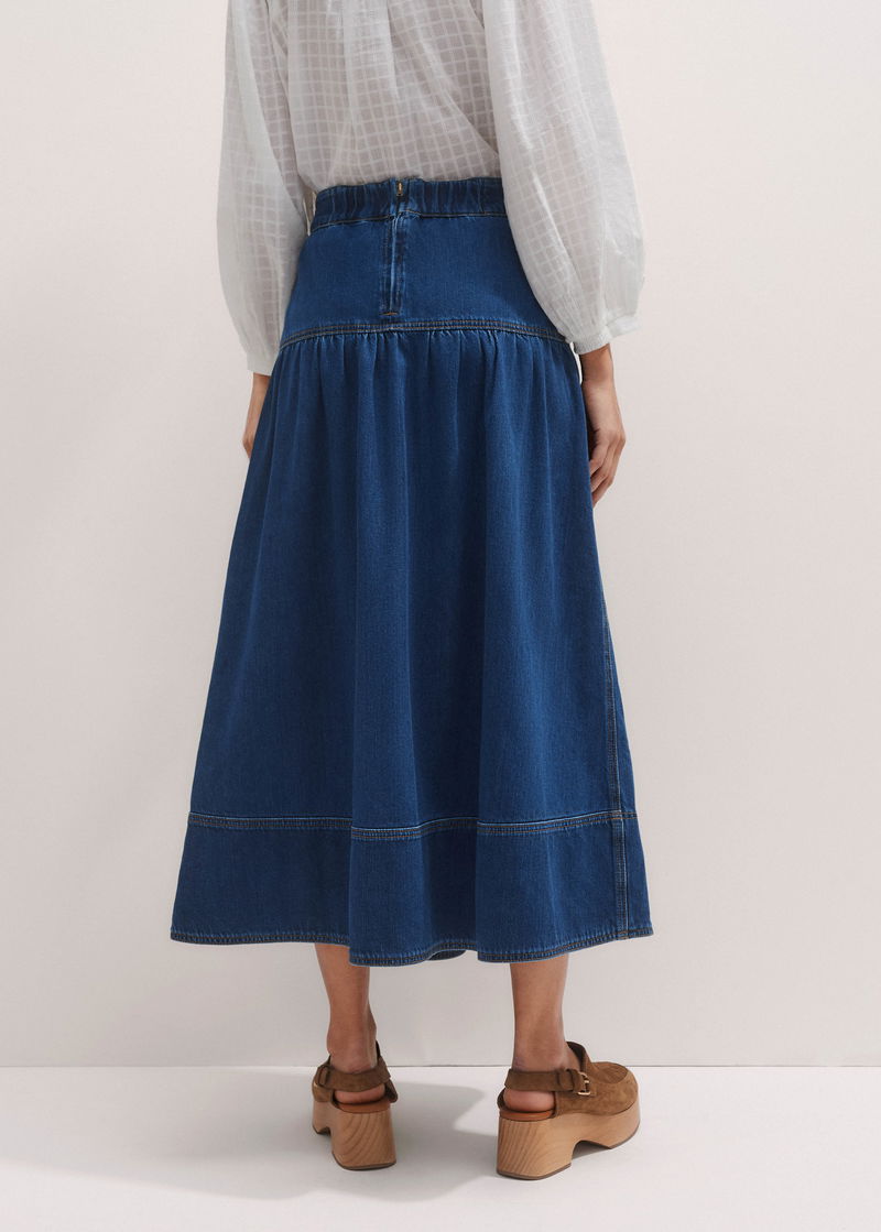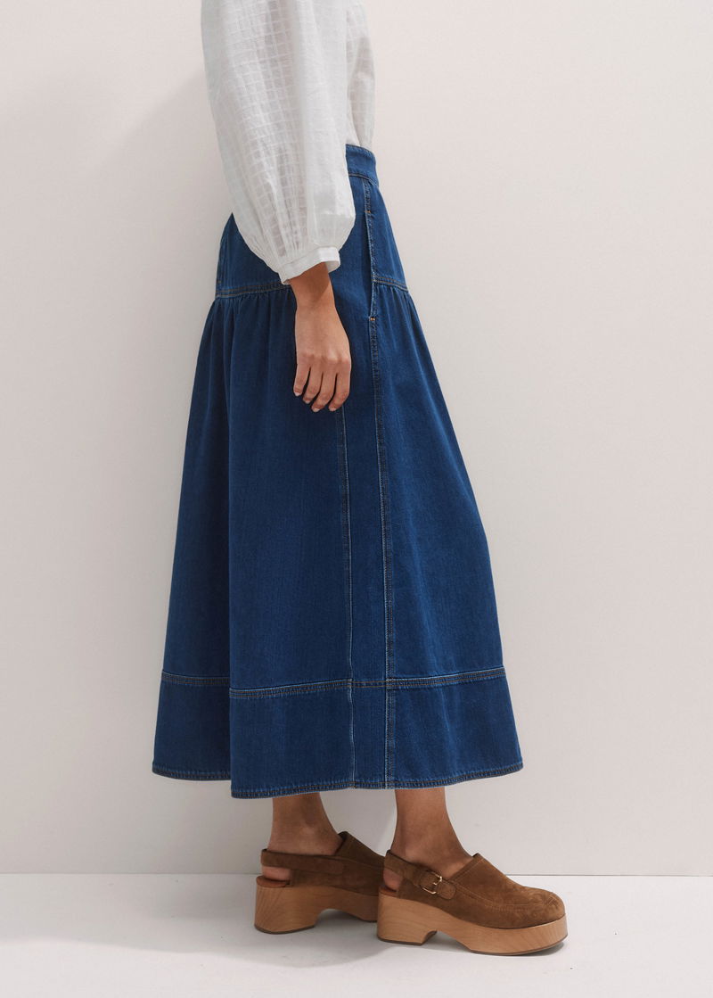 Gathered Denim Maxi Skirt Mid Blue