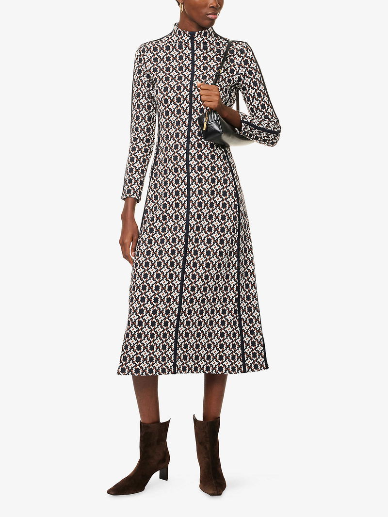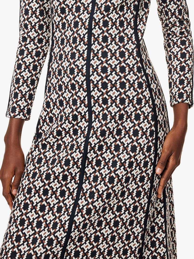 Geometric Jacquard Stretch-Cotton Midi-Dress