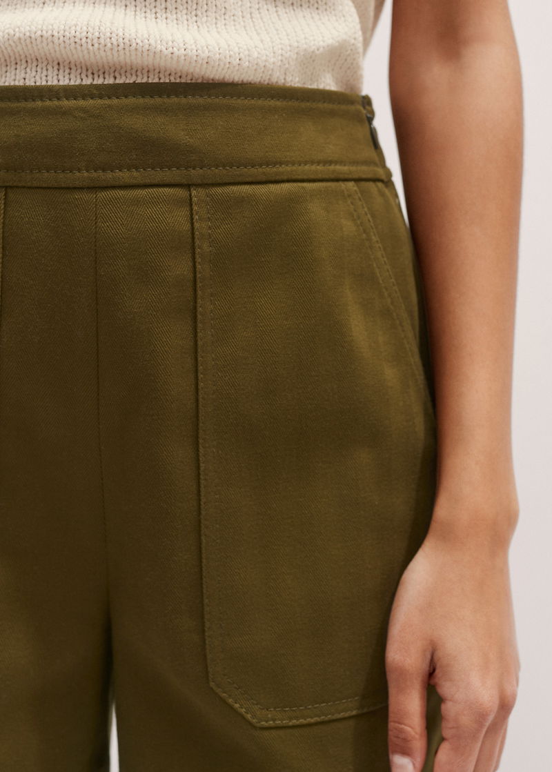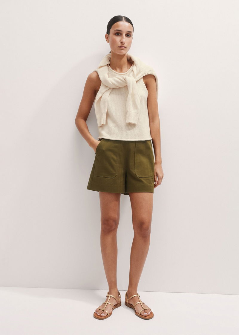 ME+EM's Olive Green Herringbone Patch Pocket Short is granted a utilitarian edge with functional front patch pockets.