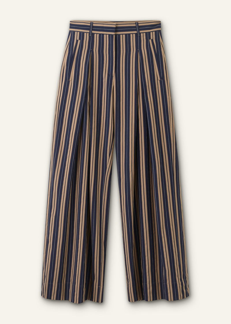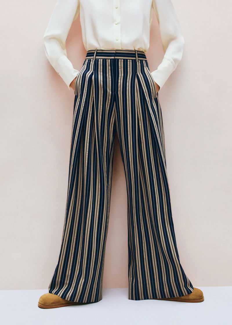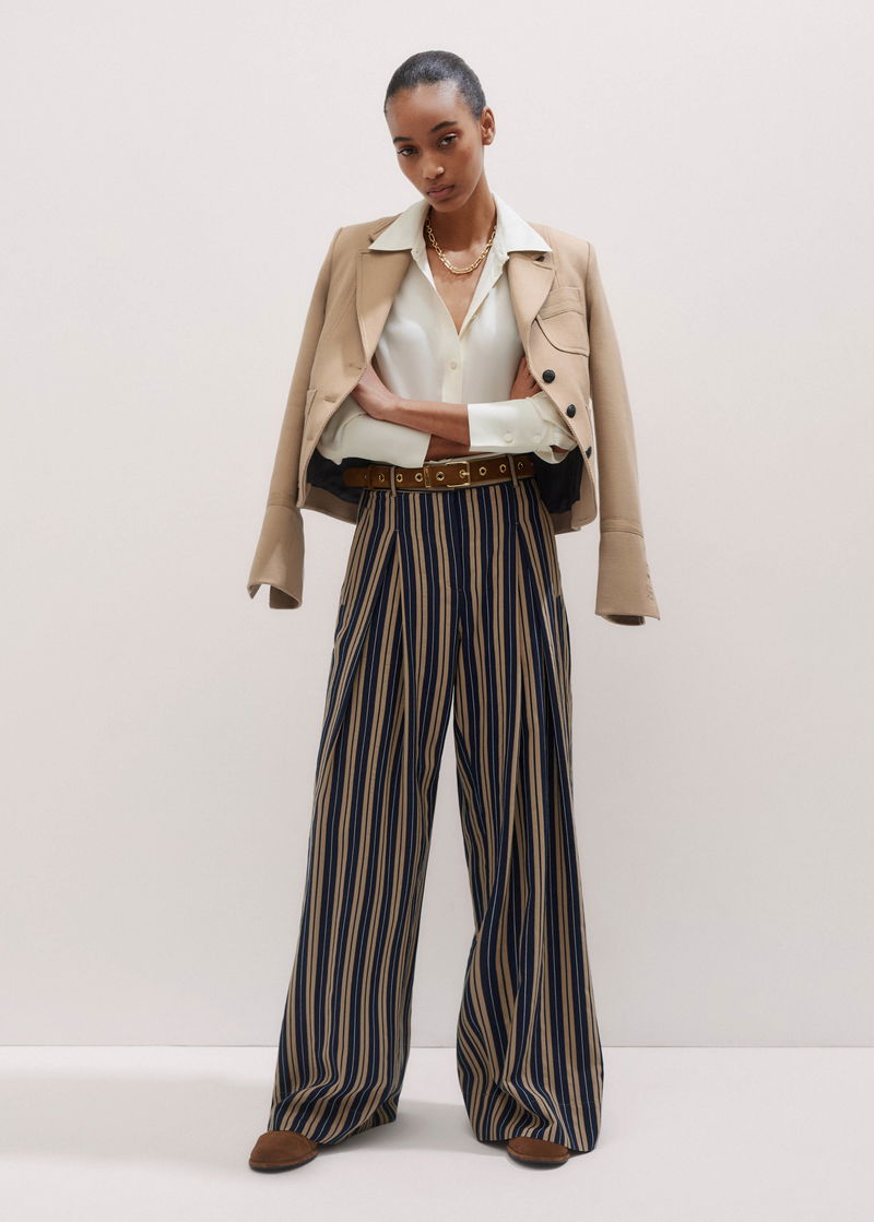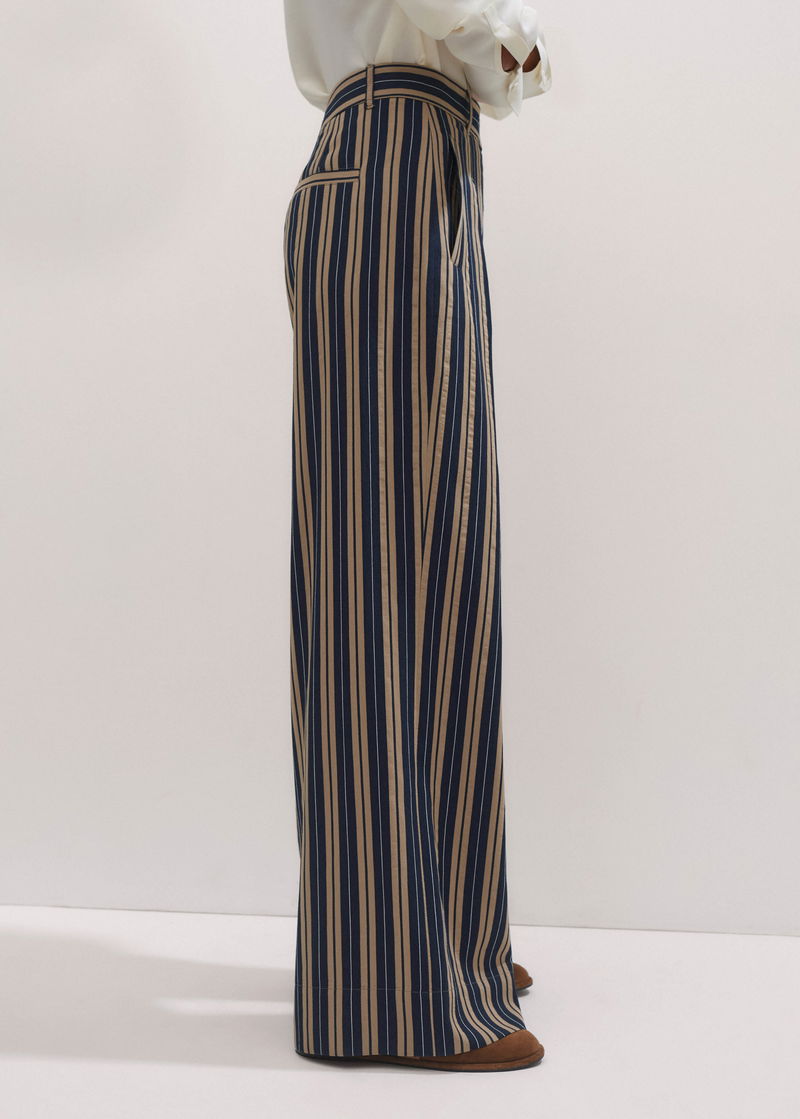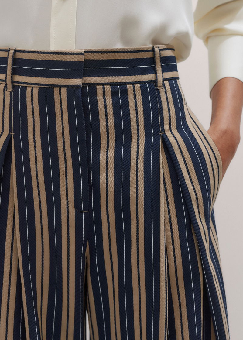 ME+EM's Navy Herringbone Statement Stripe Wide-Leg Trouser is made from a viscose-blend fabric with inverted front pleats.
