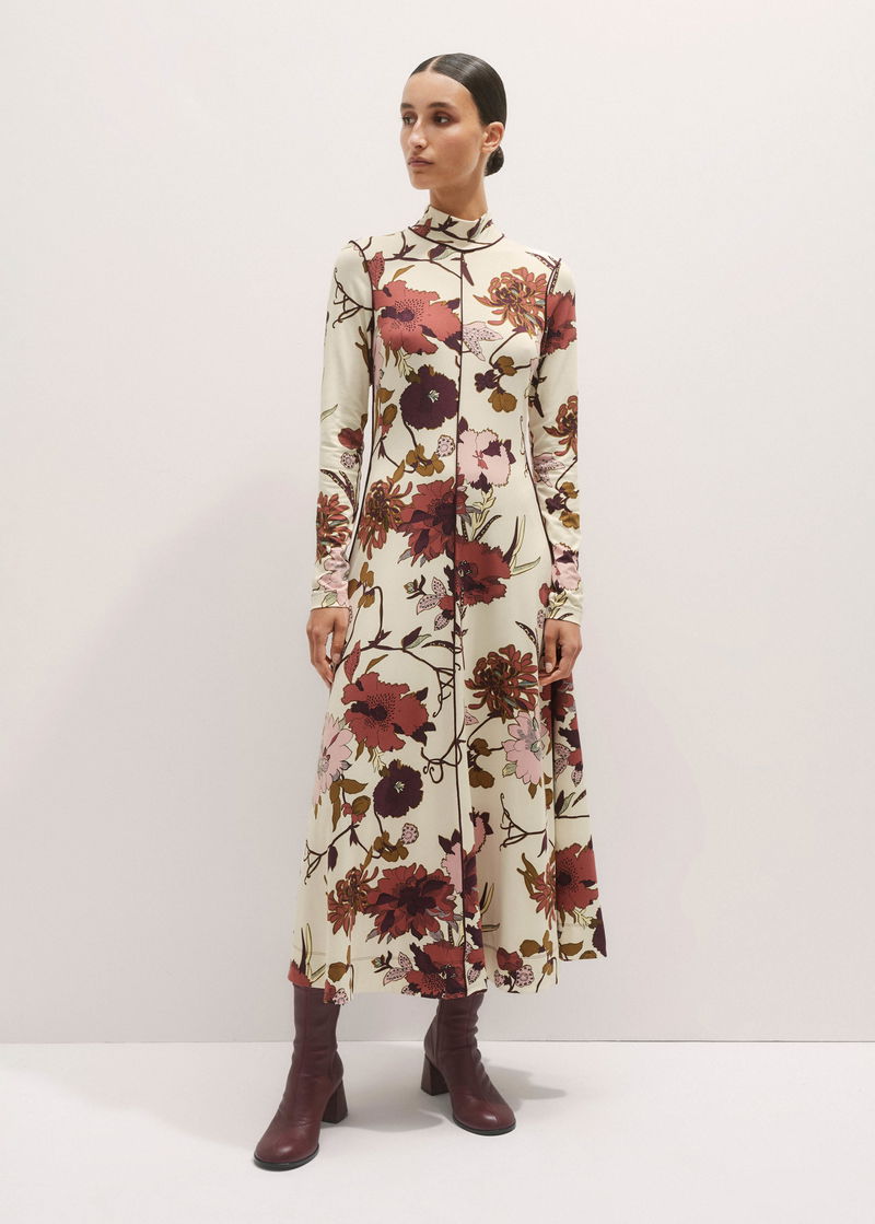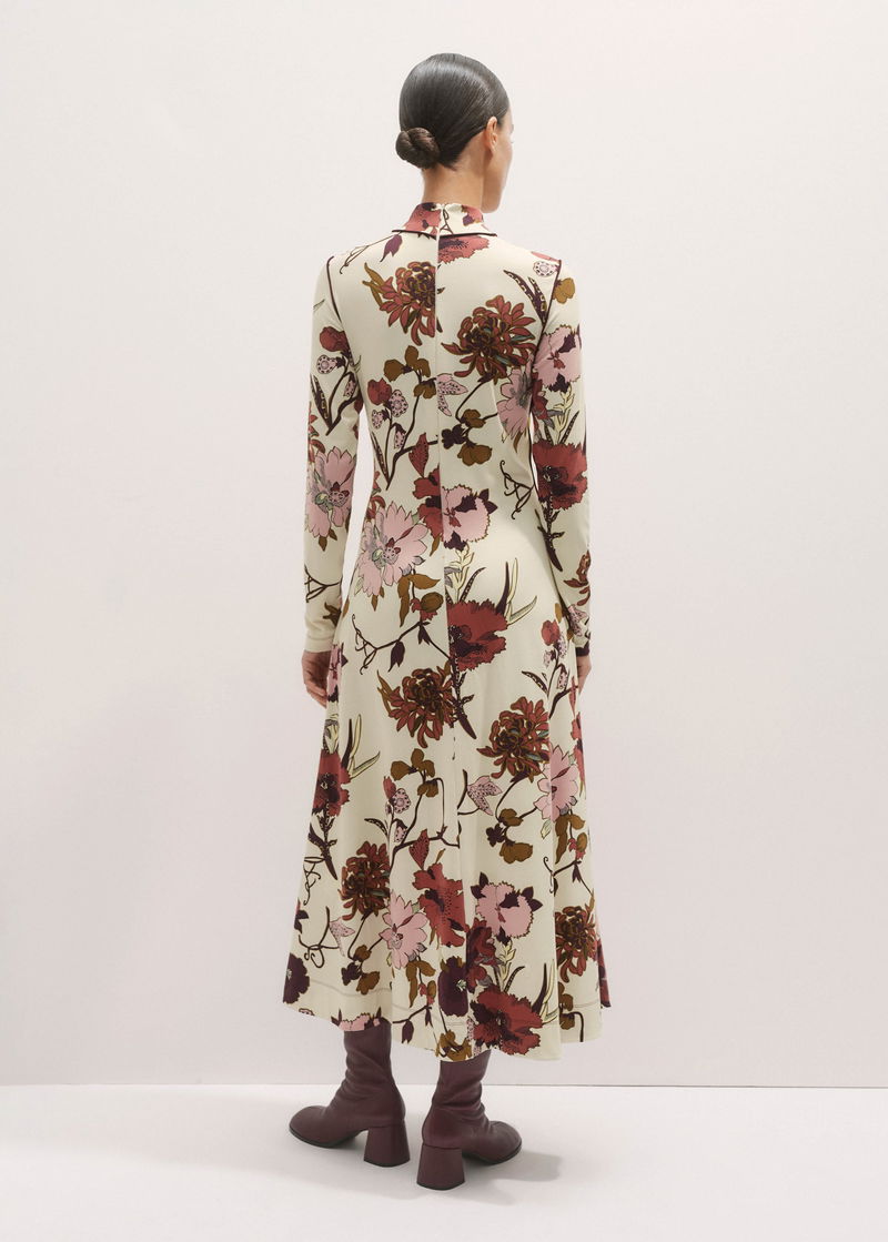 High Neck Jersey Maxi Dress Cream Multi