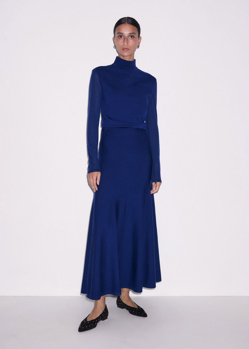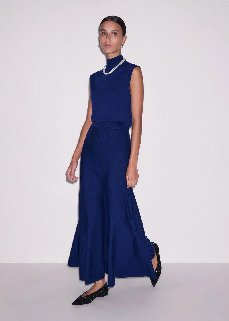 High Neck Knit Maxi Dress + Layering Top Jewel Blue