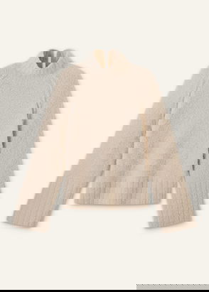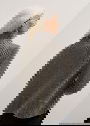 • Relaxed fit, high neck, dropped shoulders, long sleeves, ribbed trims, centre back split, bouclé texture
