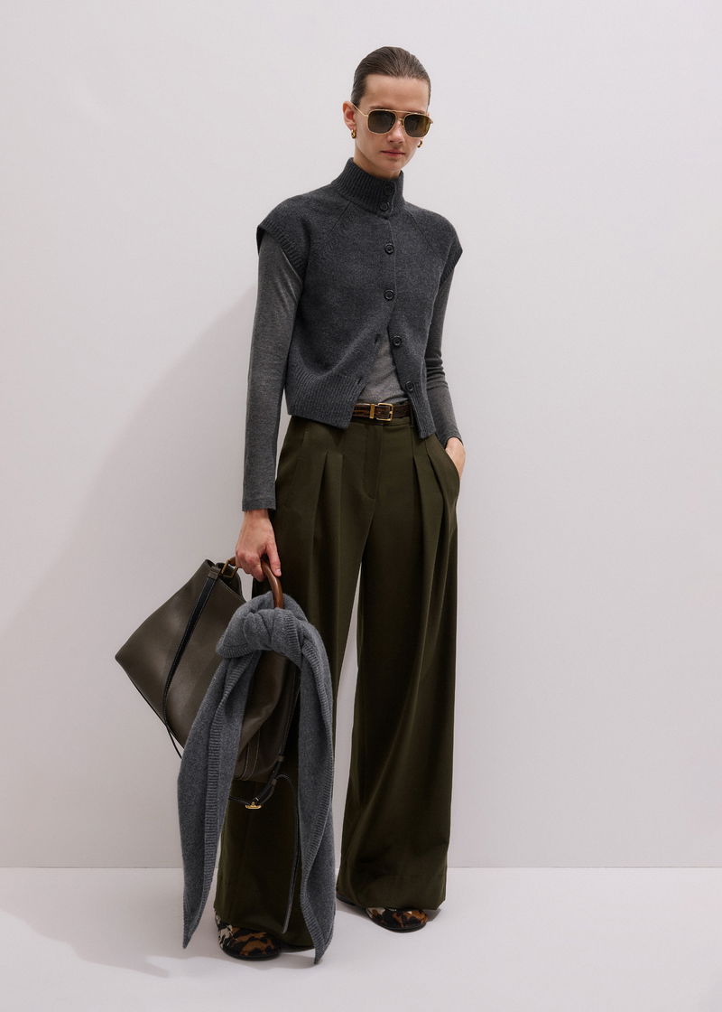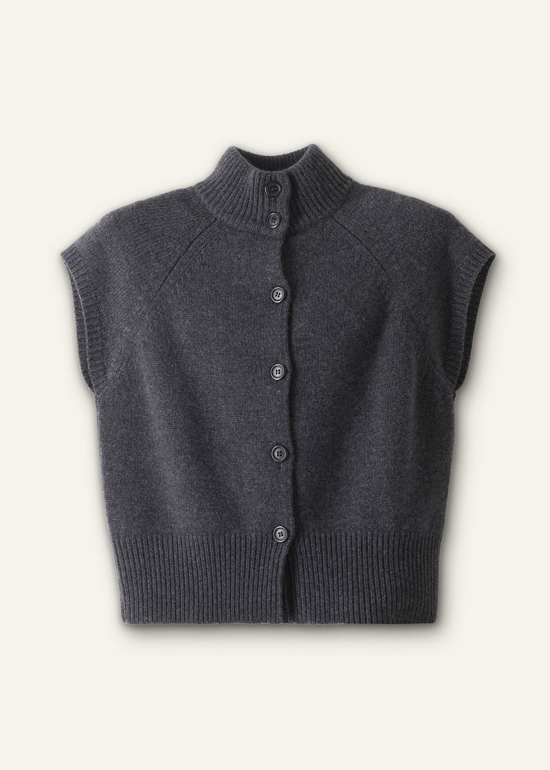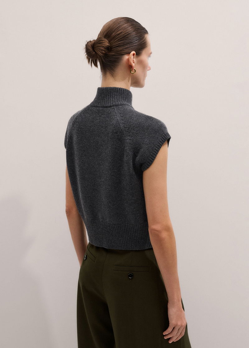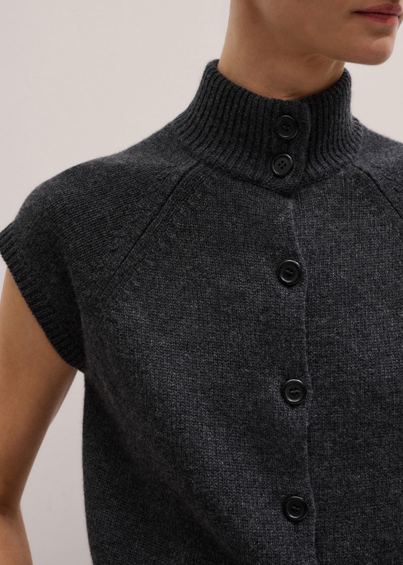 ME+EM's Grey High Neck Relaxed Vest is cut to a relaxed, short-sleeve silhouette for the ideal balance between vest and cardigan.