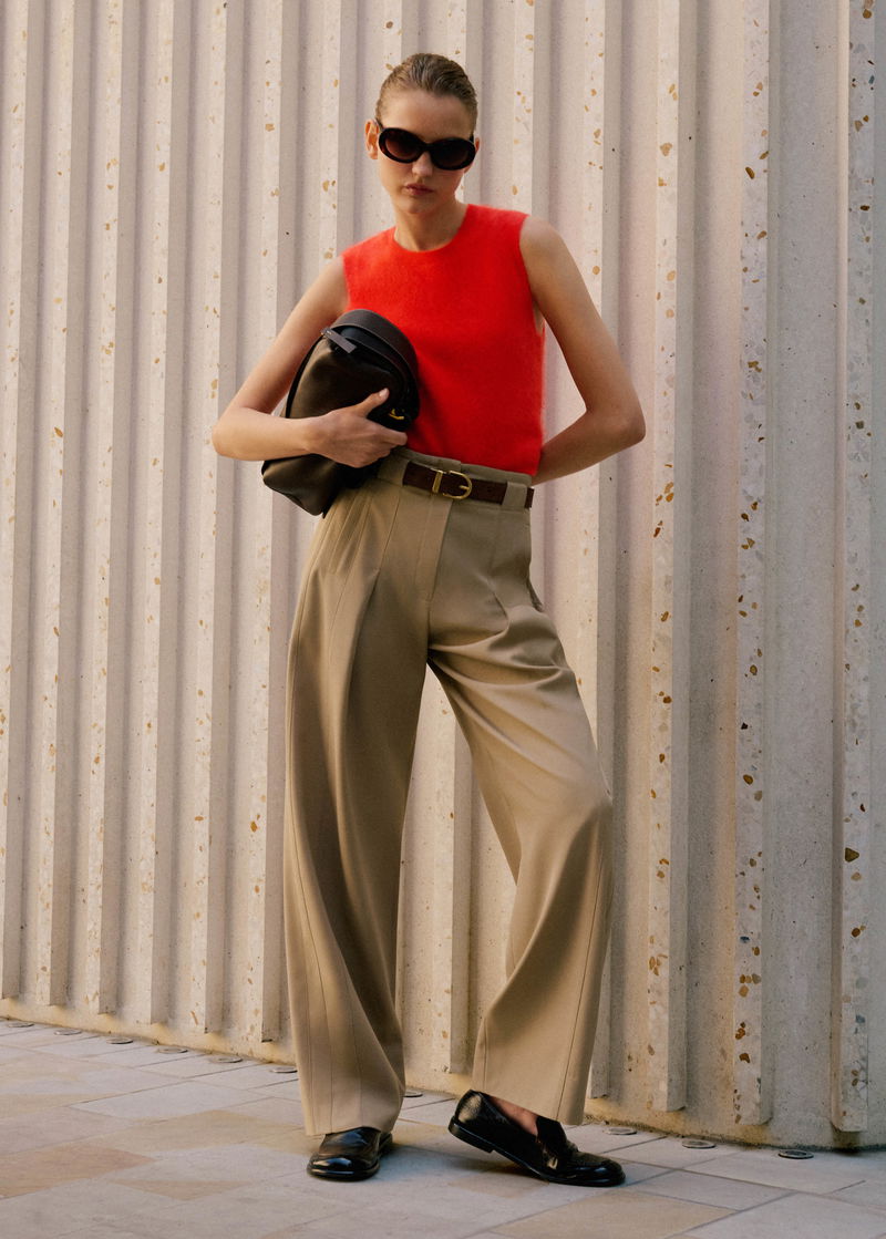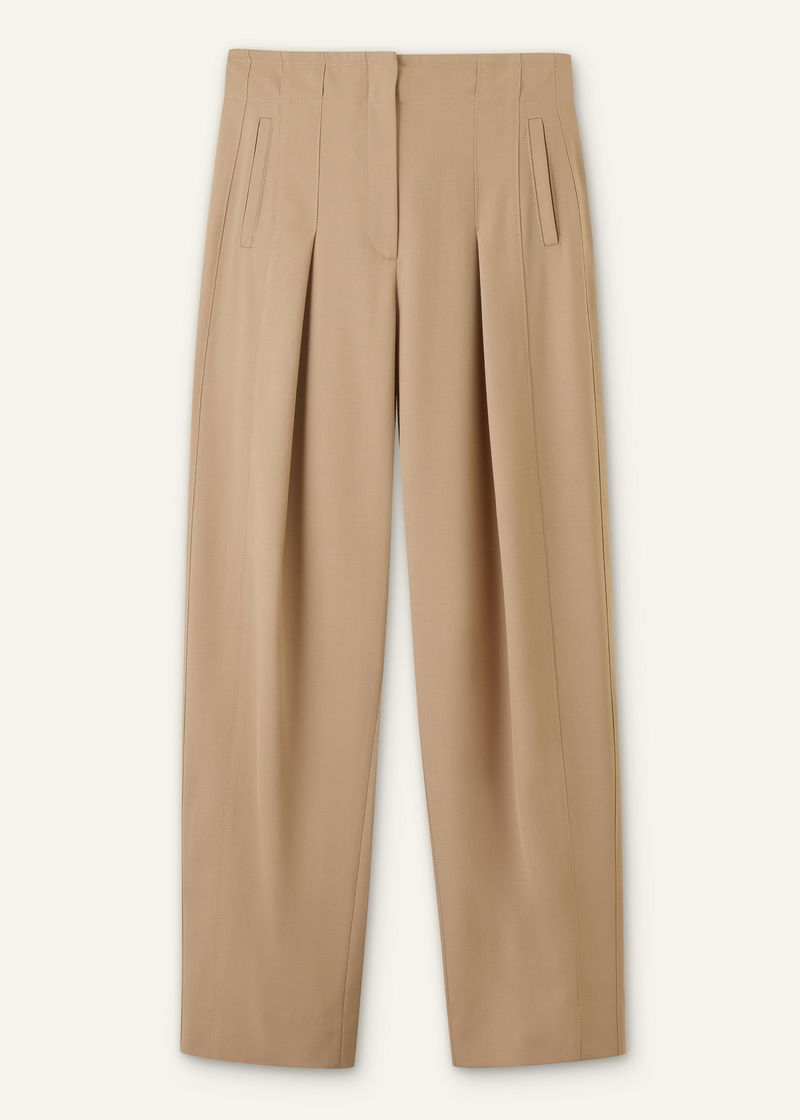 ME+EM's Brown High Waist Contour Trouser features cleverly contoured seams that fall to inverted pleats to create a structured, modern shape through the leg.