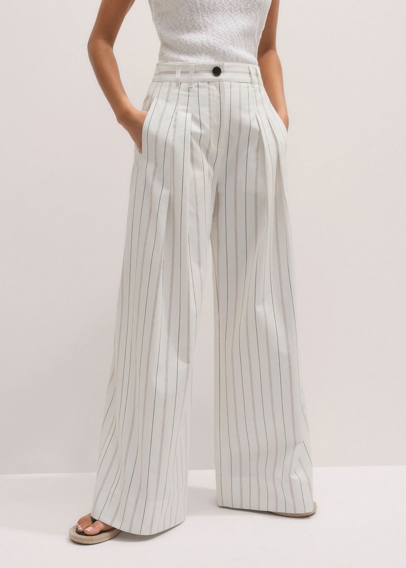 ME+EM's White Multi Stripe Pleat Front Wide-Leg Trouser is elevated with expertly placed pleats for a naturally flattering drape.