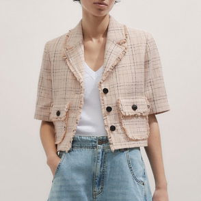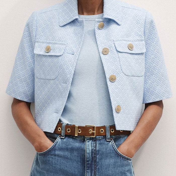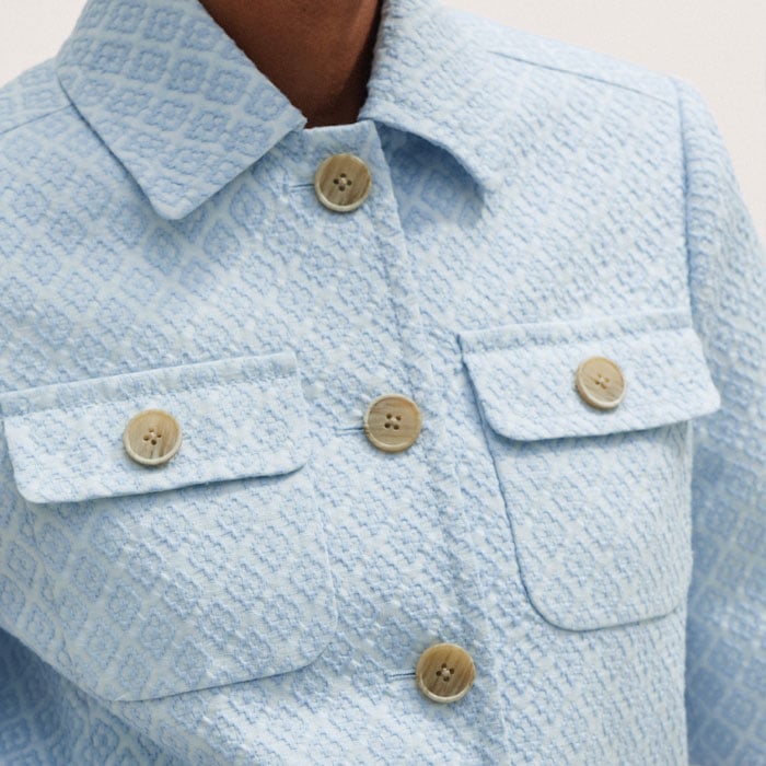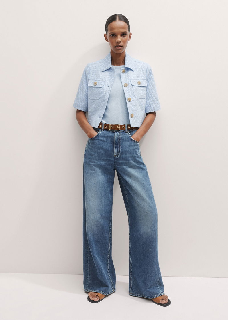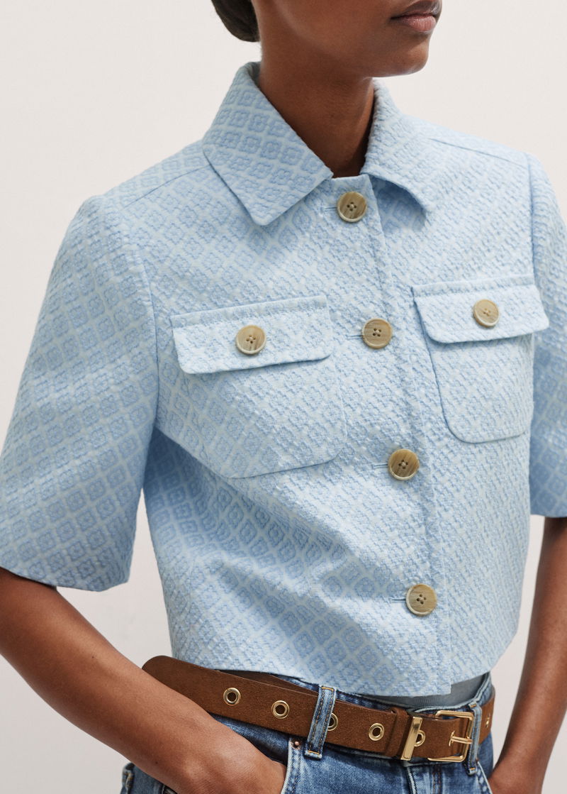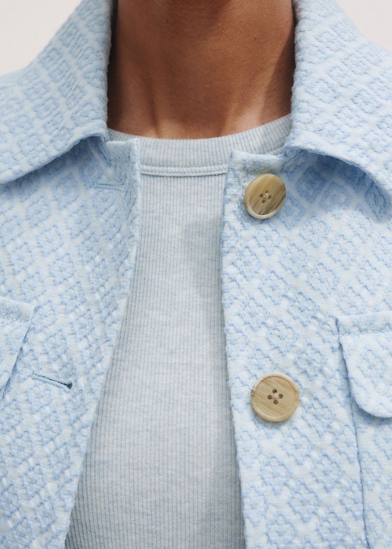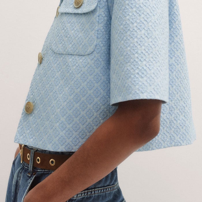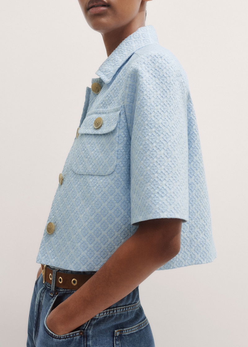 Italian Jacquard Cropped Jacket Chambray Blue
