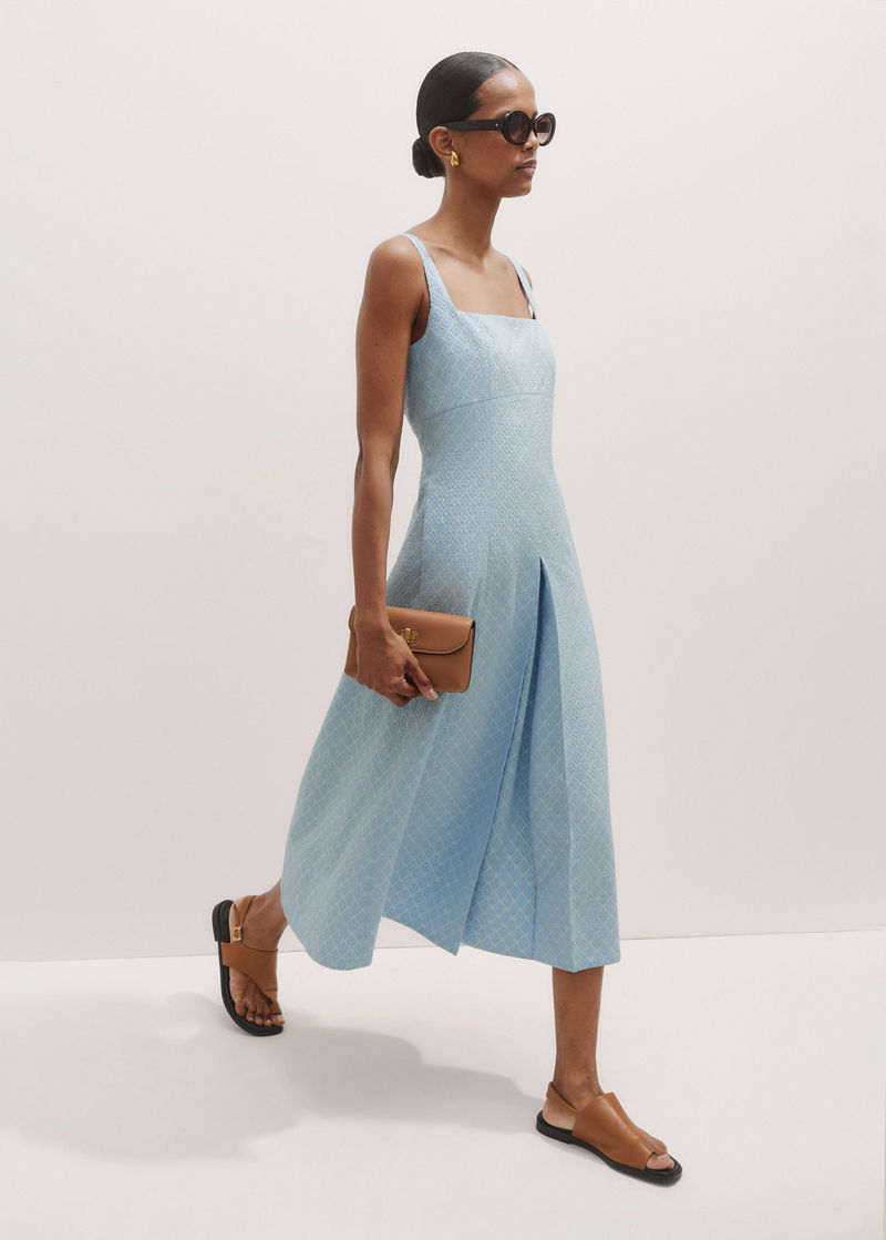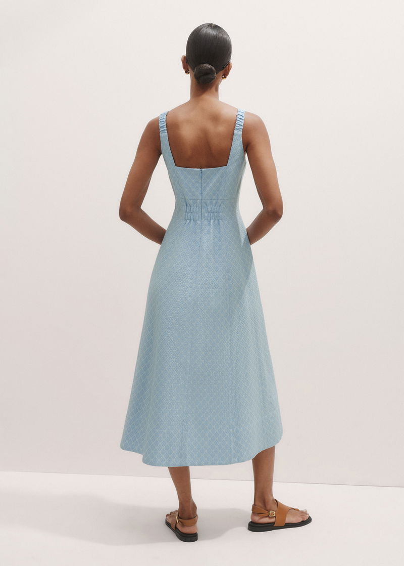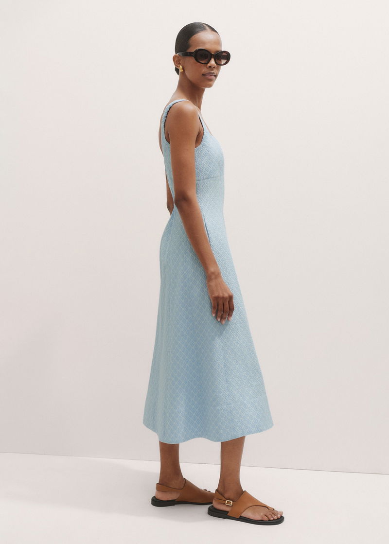 Italian Jacquard Fit And Flare Midi Dress Chambray Blue