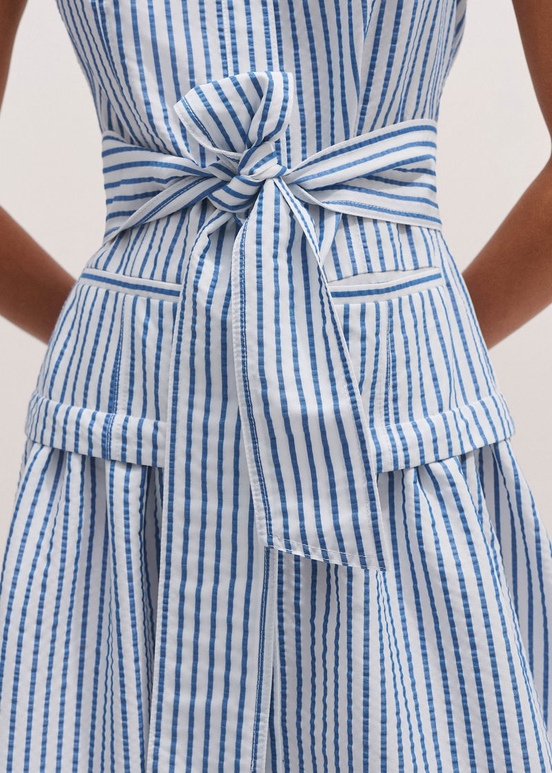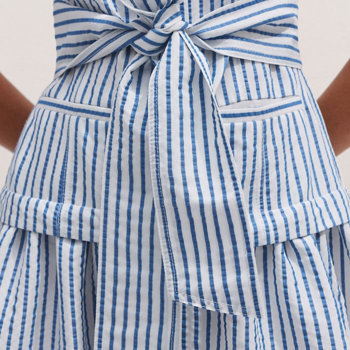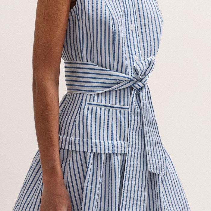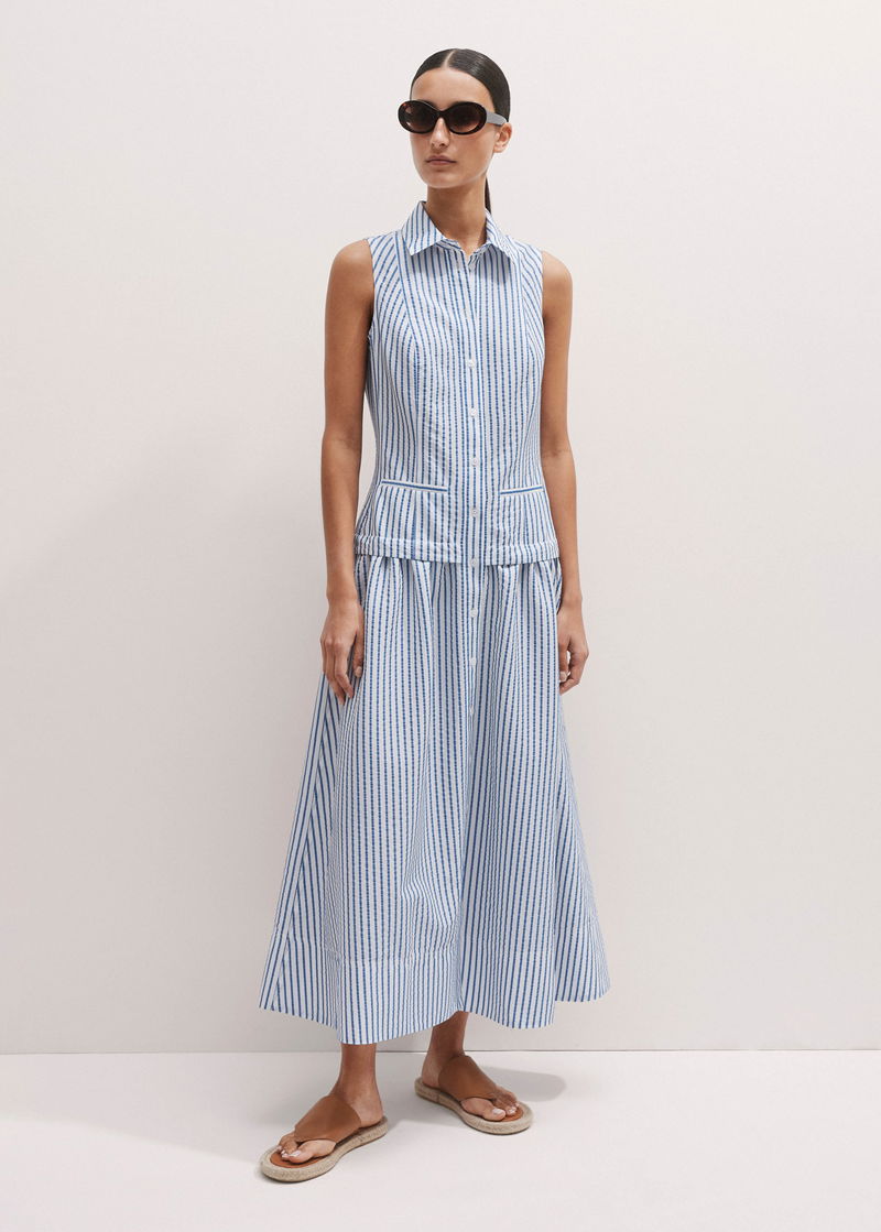 ME+EM's Blue Seersucker Maxi Shirt Dress + Belt is designed with a collared neckline, functional pockets and a flared hem.