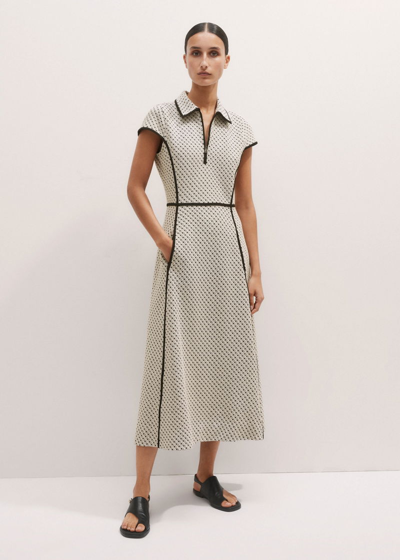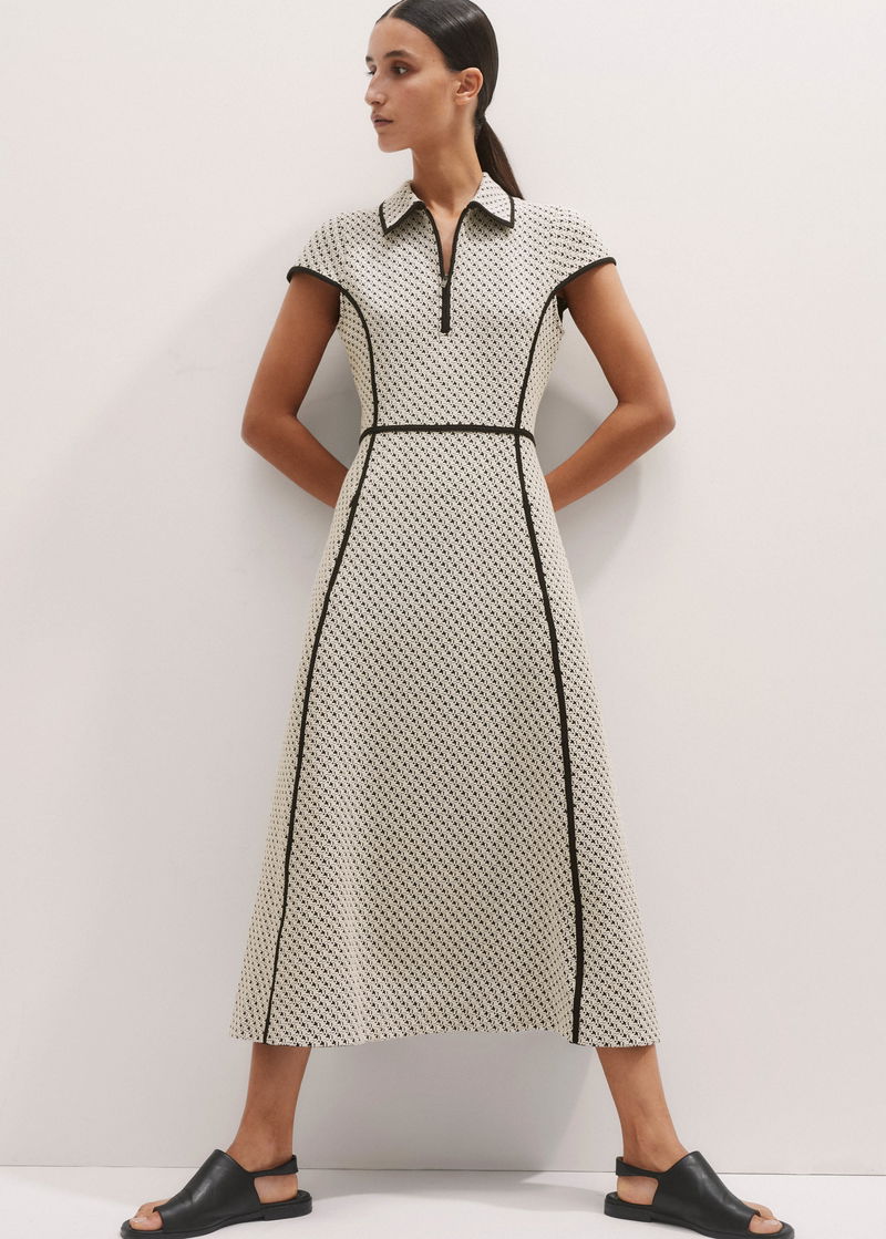 Jacquard Fit And Flare Midi Dress Black/Cream