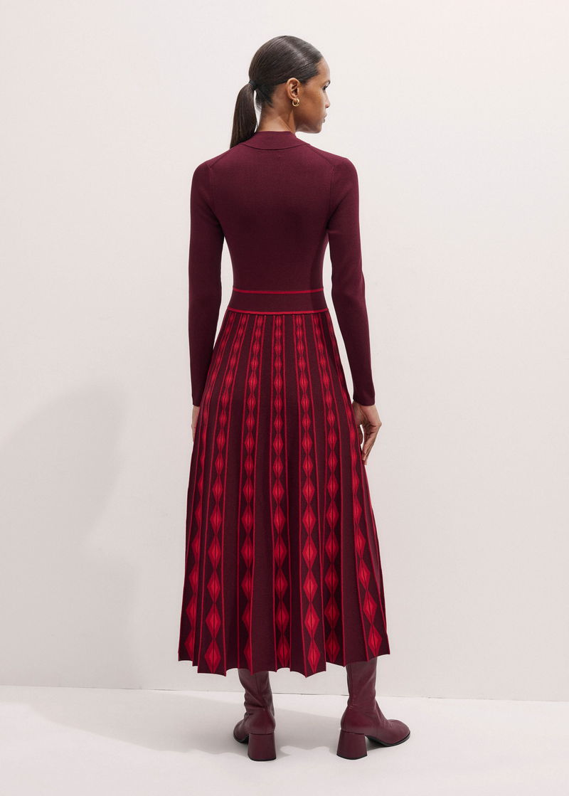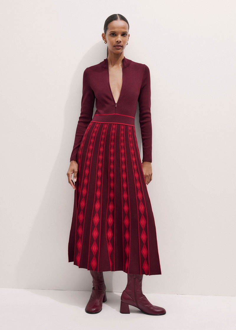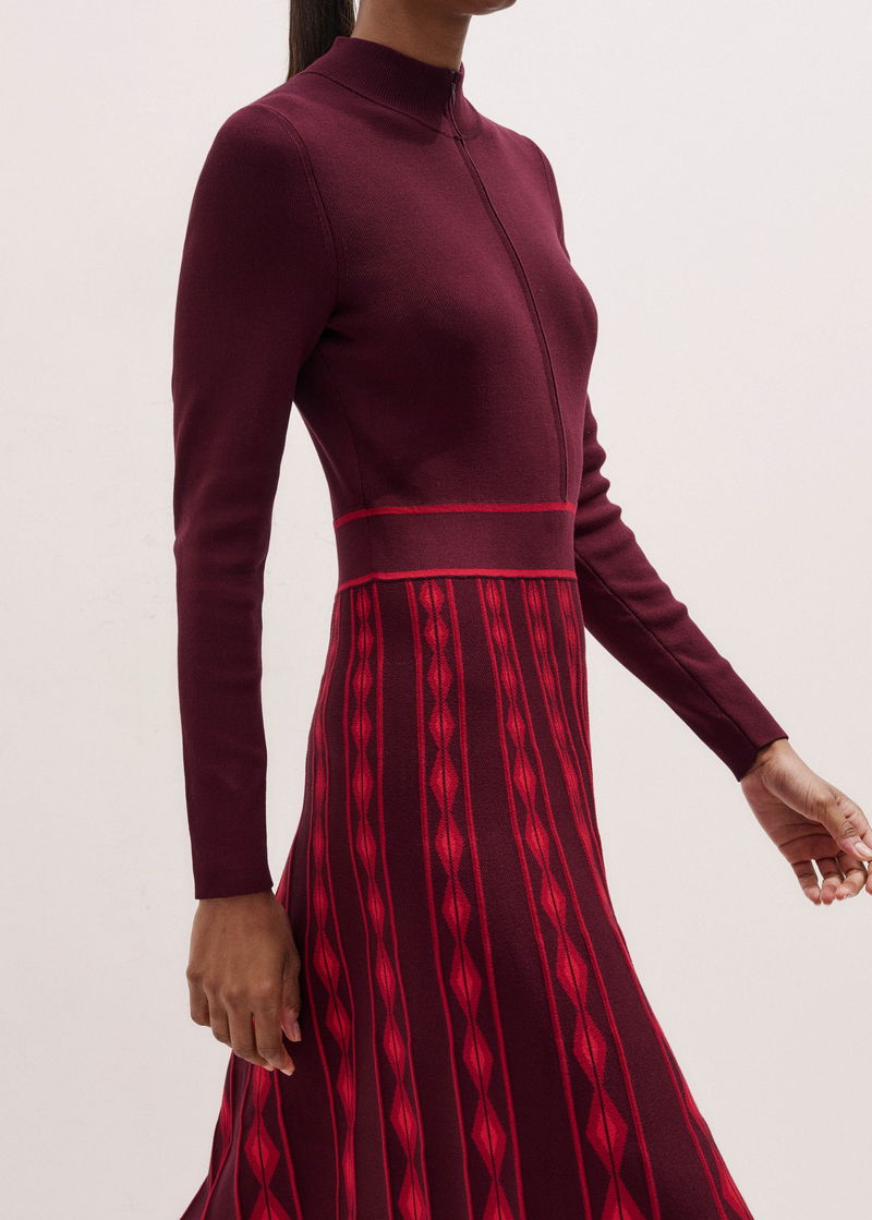 Jacquard Half Zip Knit Maxi Dress Red Multi
