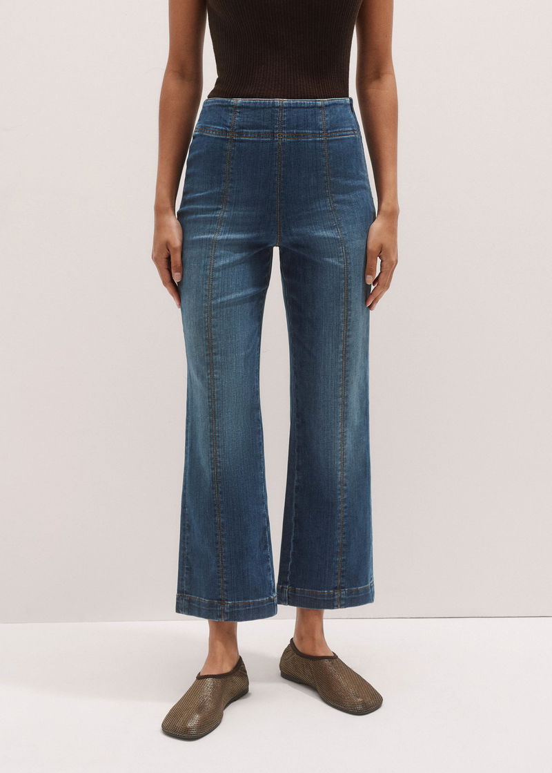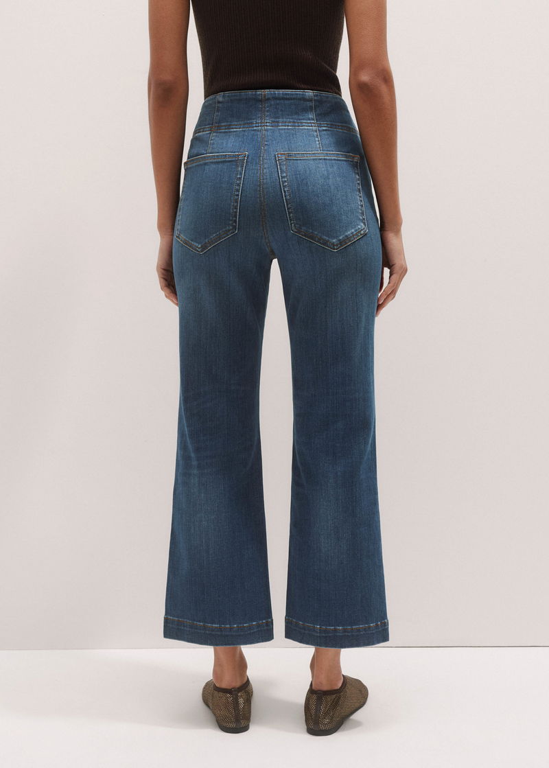 Kick Flare Crop Travel Jean Mid Blue Wash