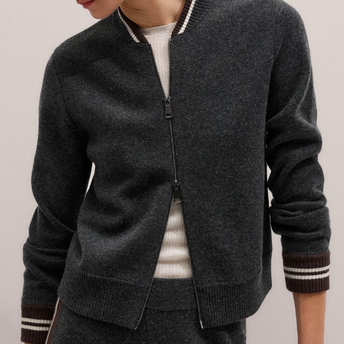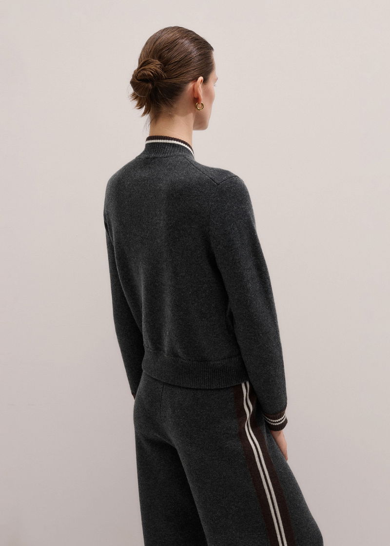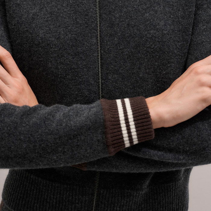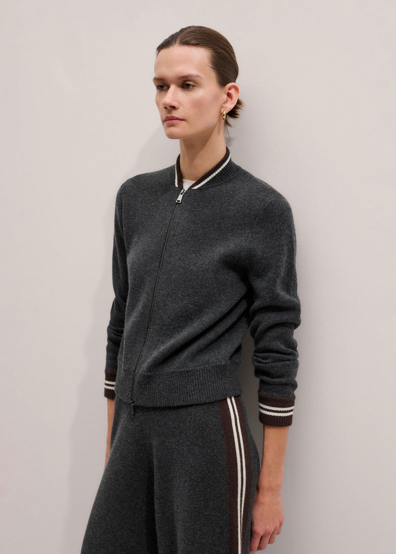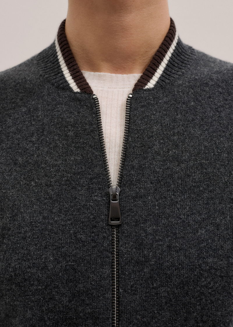 Knit Bomber Jacket Charcoal Melange/Chocolate