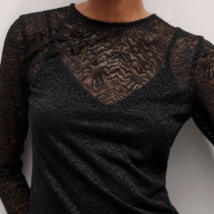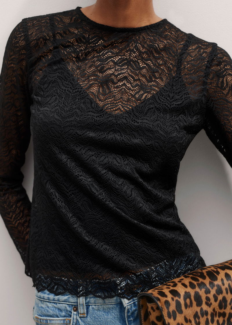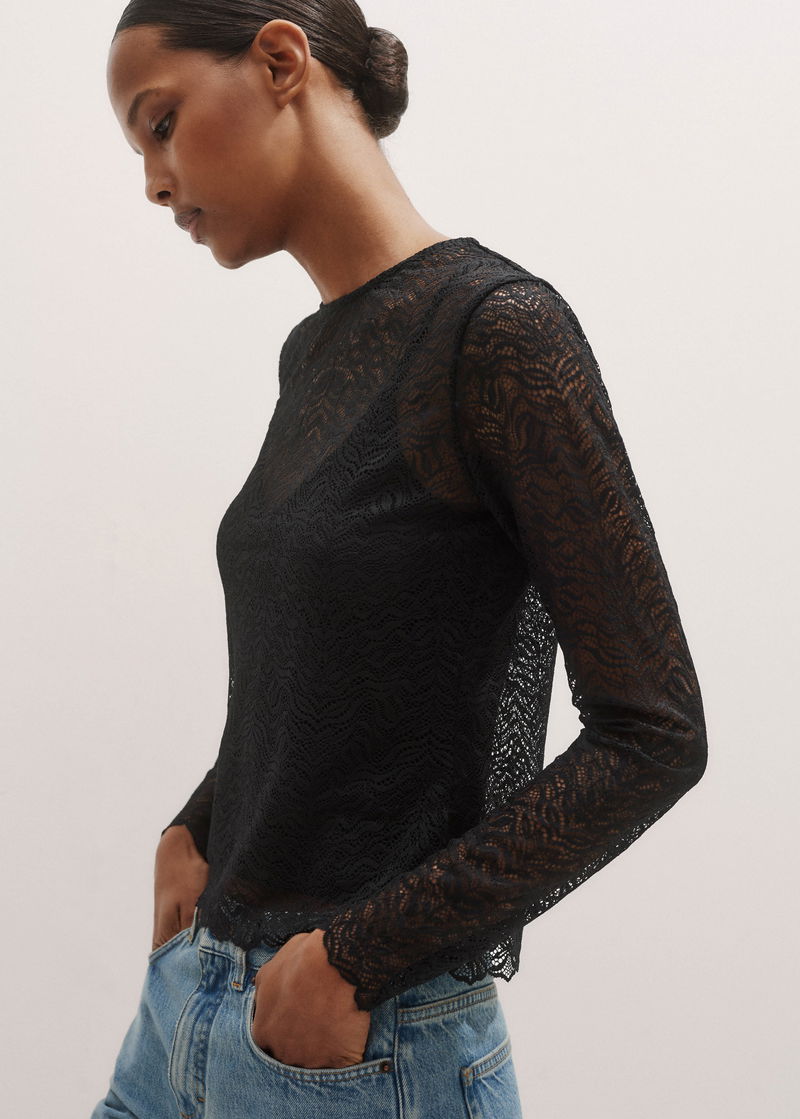 Lace Crew Neck Top Black