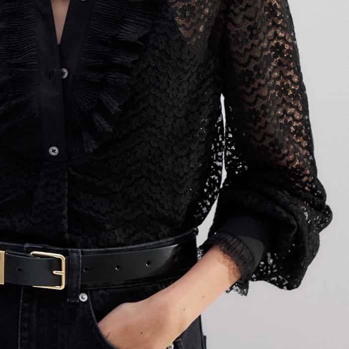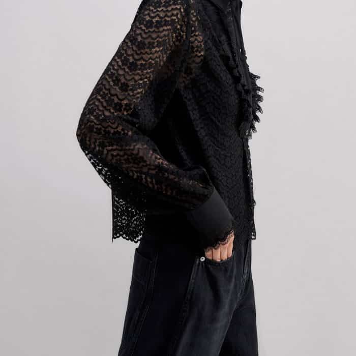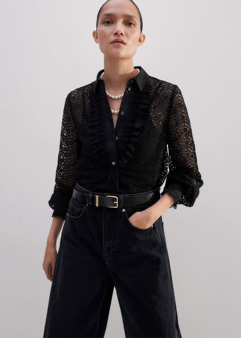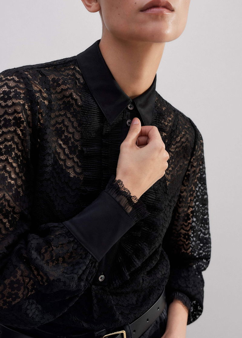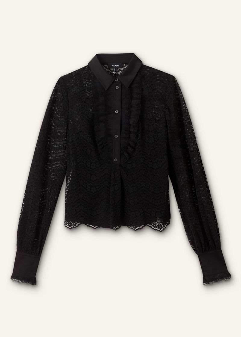 Lace Cropped Shirt + Cami Black
