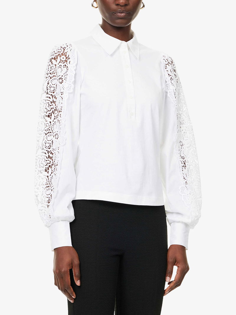 Layering Lace-Embroidery Cotton-Jersey Shirt