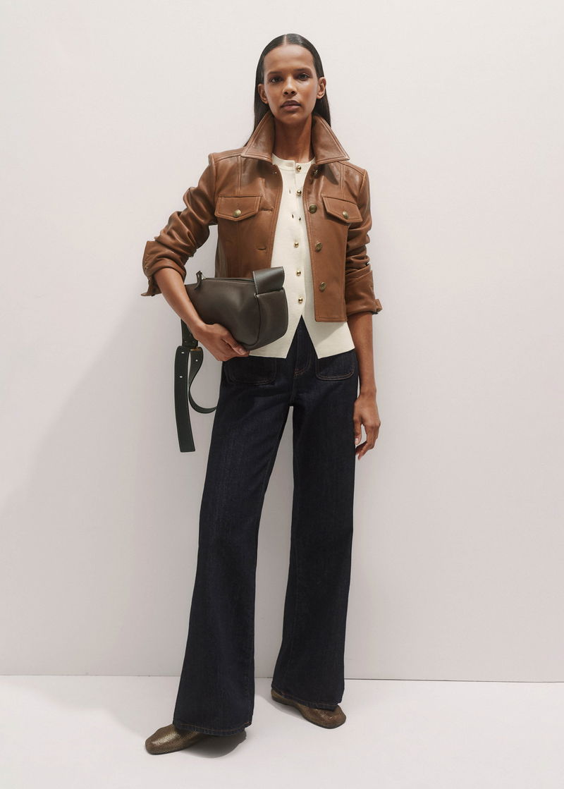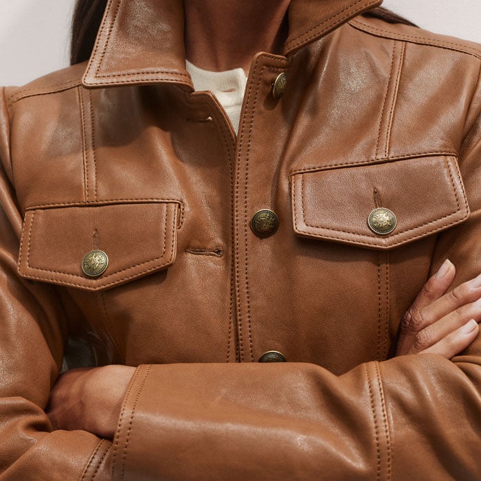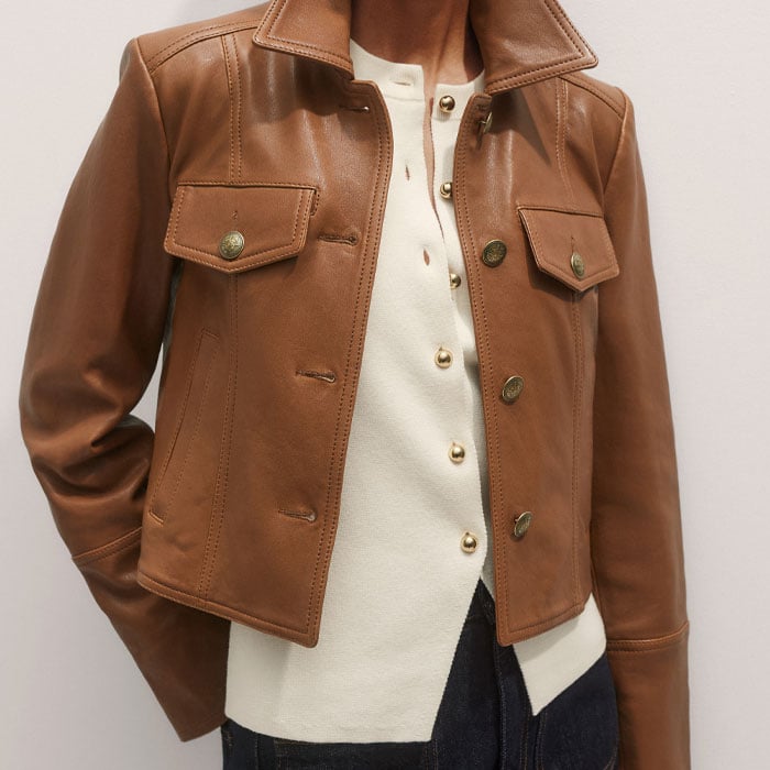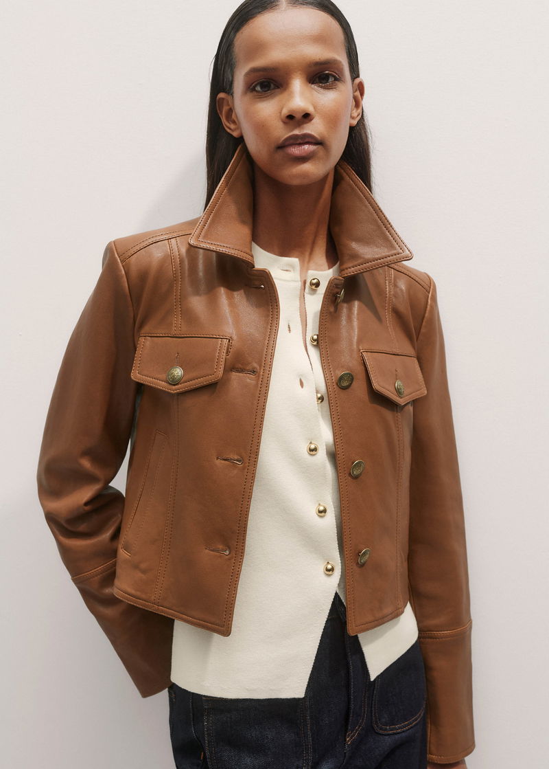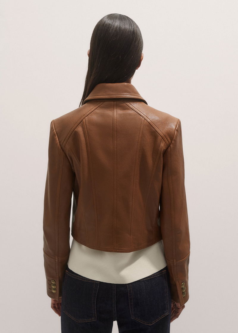 Leather Utility Crop Jacket Summer Caramel