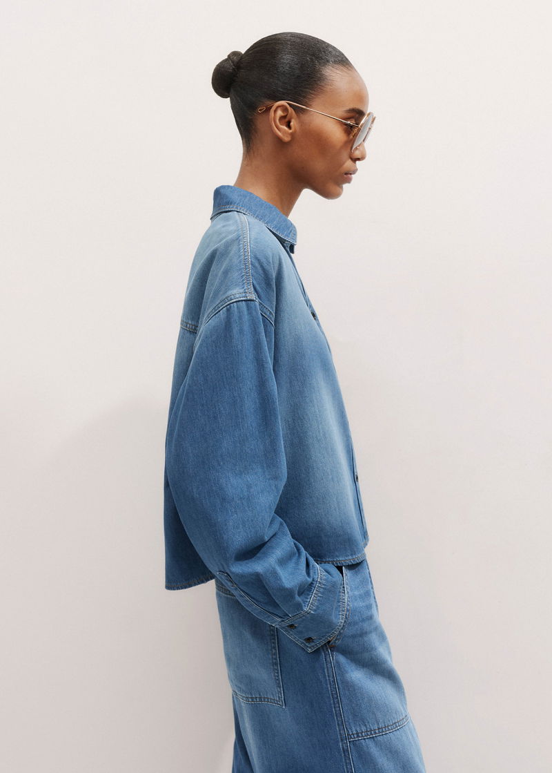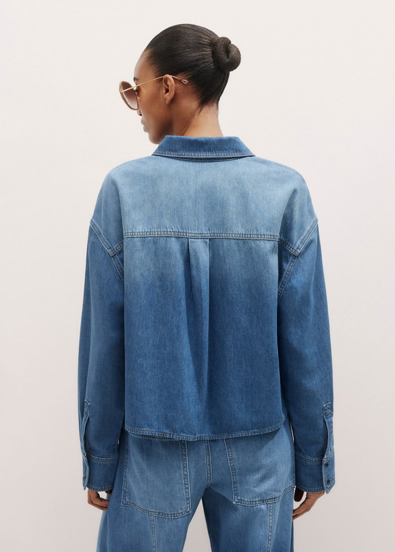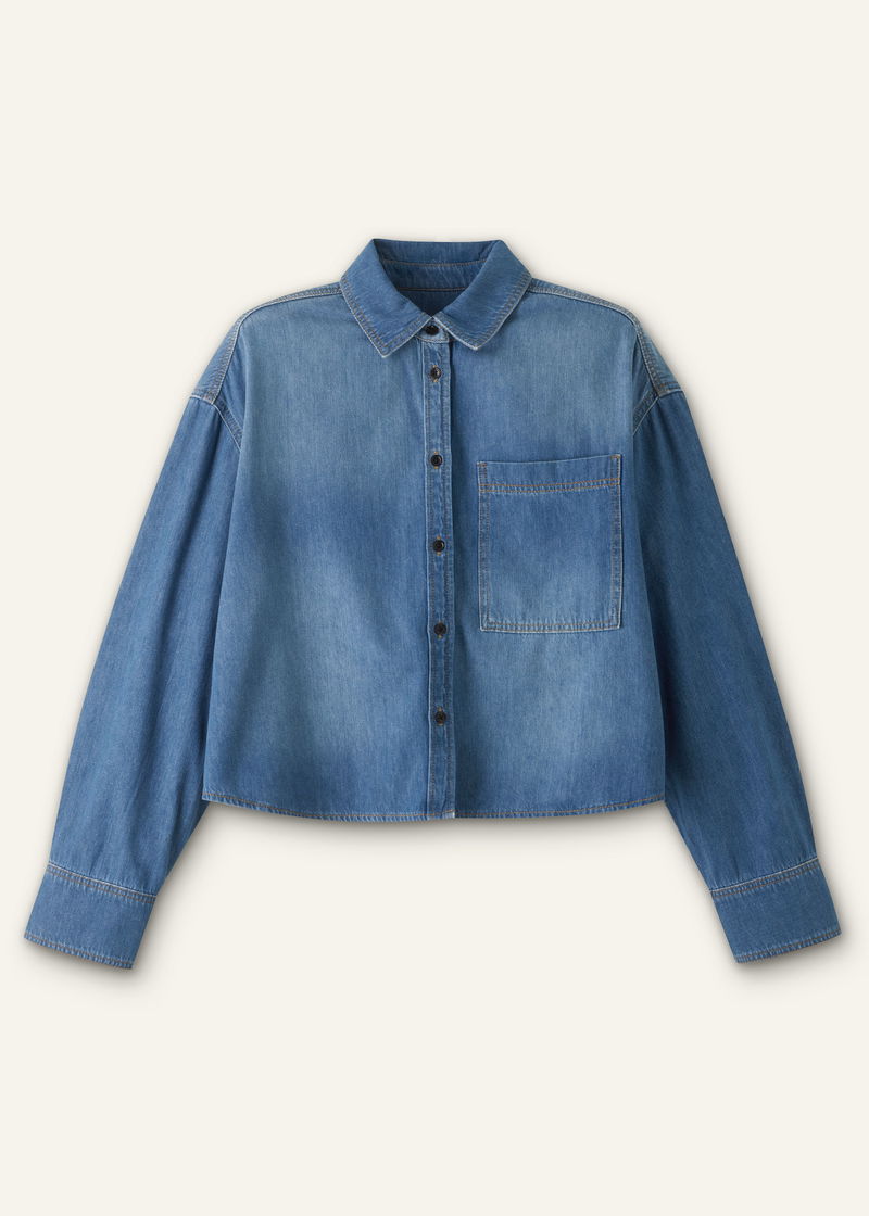 Lightweight Denim Cropped Shirt Washed Mid Blue