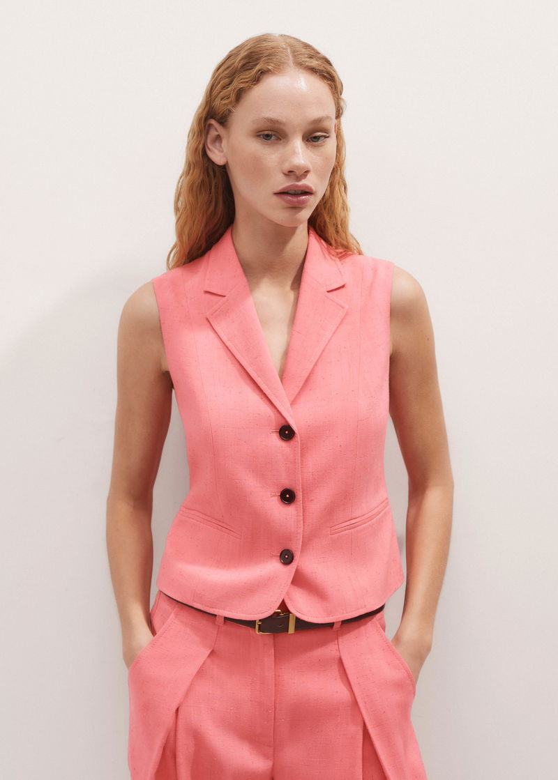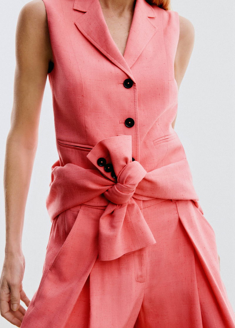 Lightweight Tailored Sleeveless Crop Jacket Camellia Pink